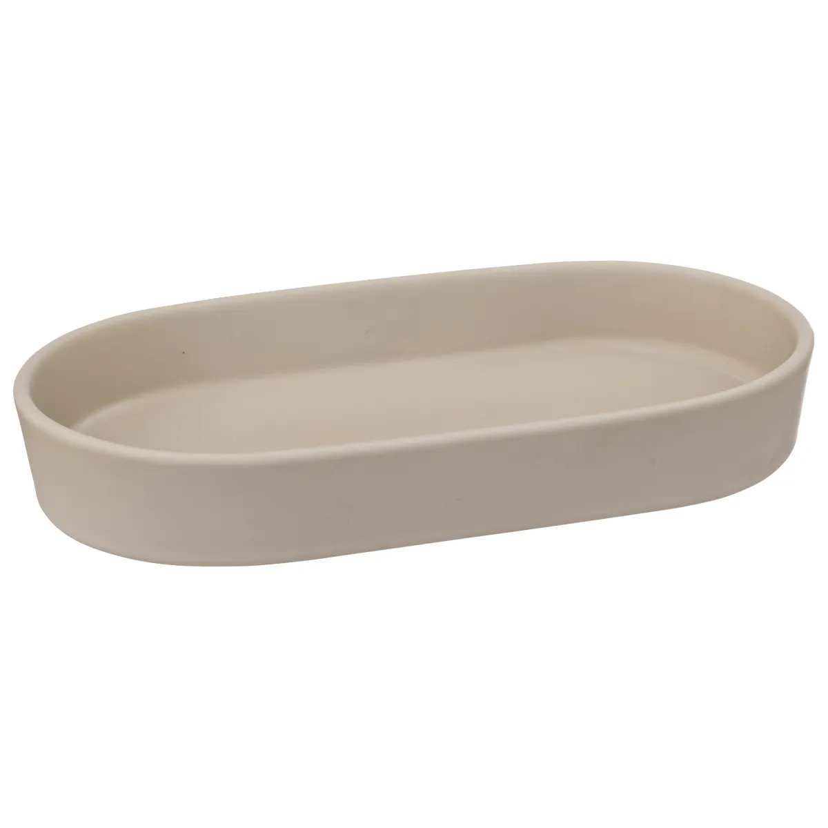 Bandeja Para Jabón/Vaso/Dispensador Cocon | Los accesorios y la organización del baño son esenciales para que tus rutinas más personales te traigan todo el bienestar que te mereces. ¡Conoce nuestra colección de accesorios para el baño! | Color: Lino | Medidas: 3×10.6x19cm | Material: Gres | Marca: 5Five