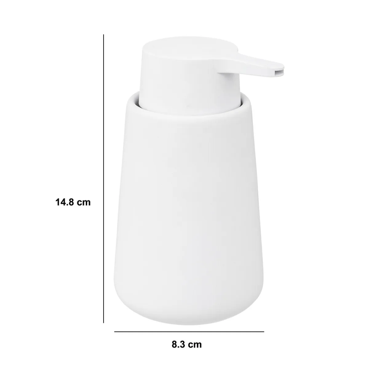 Dispensador De Jabón Líquido Cocon | Los accesorios y la organización del baño son esenciales para que tus rutinas más personales te traigan todo el bienestar que te mereces. ¡Conoce nuestra colección de accesorios para el baño! | Medidas: 8.3×14.8cm | Material: Cerámica | Color: Blanco | Marca: 5Five