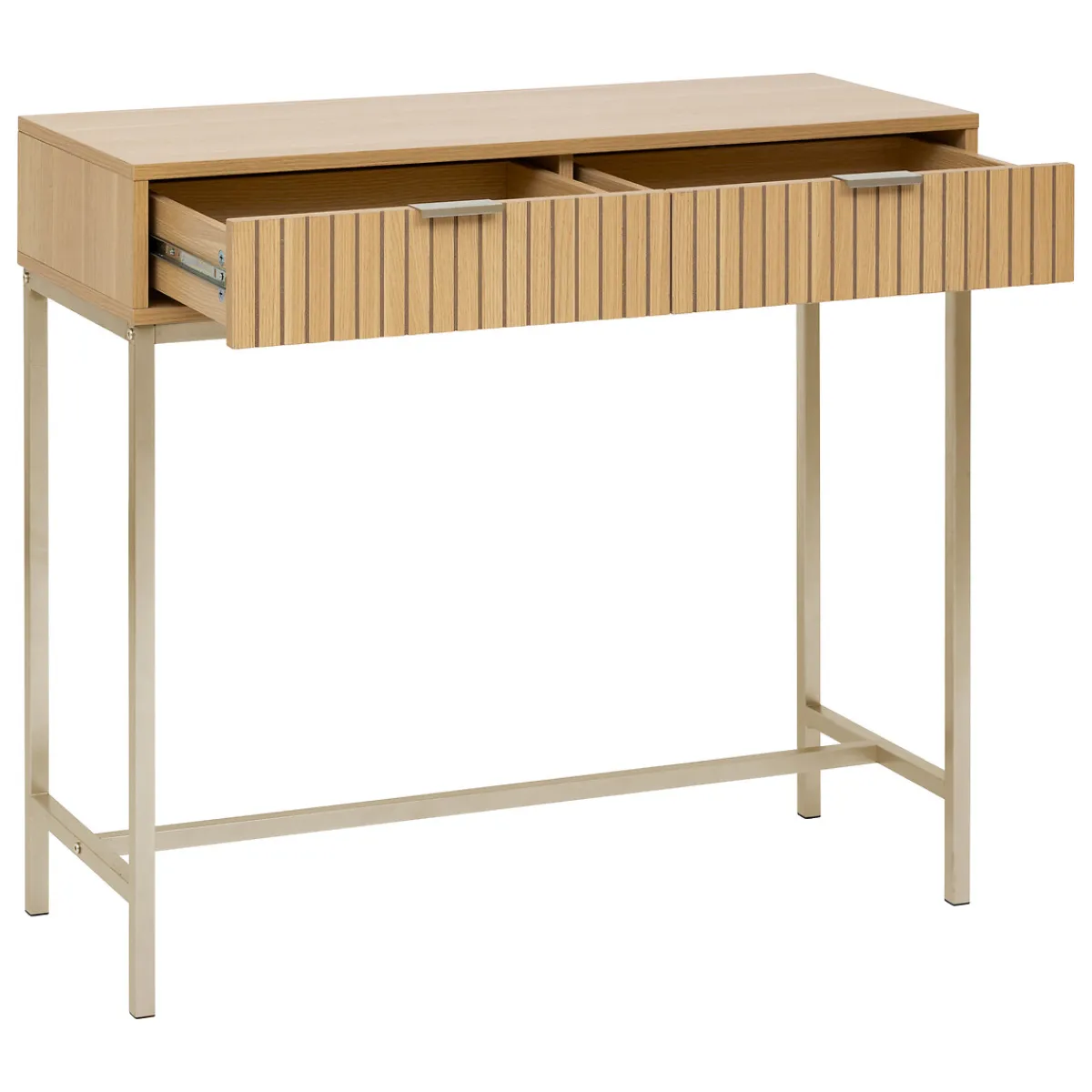 Consola con 2 cajones en mdf y metal TASSO beige | Descubre los muebles de apoyo que tenemos para ti. Los muebles Hôma están diseñados para Home Happy Living. Los mejores artículos de decoración están aquí. | Color: Beige | Medidas: 80.5x35x90cm | Material: Mdf/Metal | Marca: 5Five