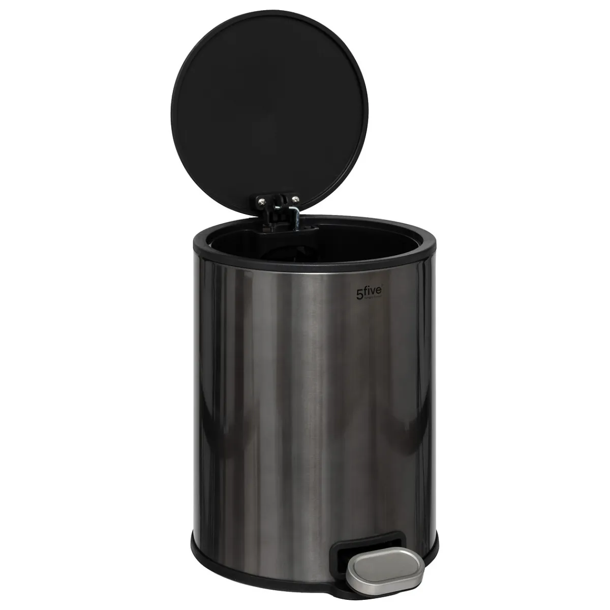 5five Botes De Basura Y Contenedores De Reciclaje>Cubo de basura negro de metal con pedal DELTA 6l