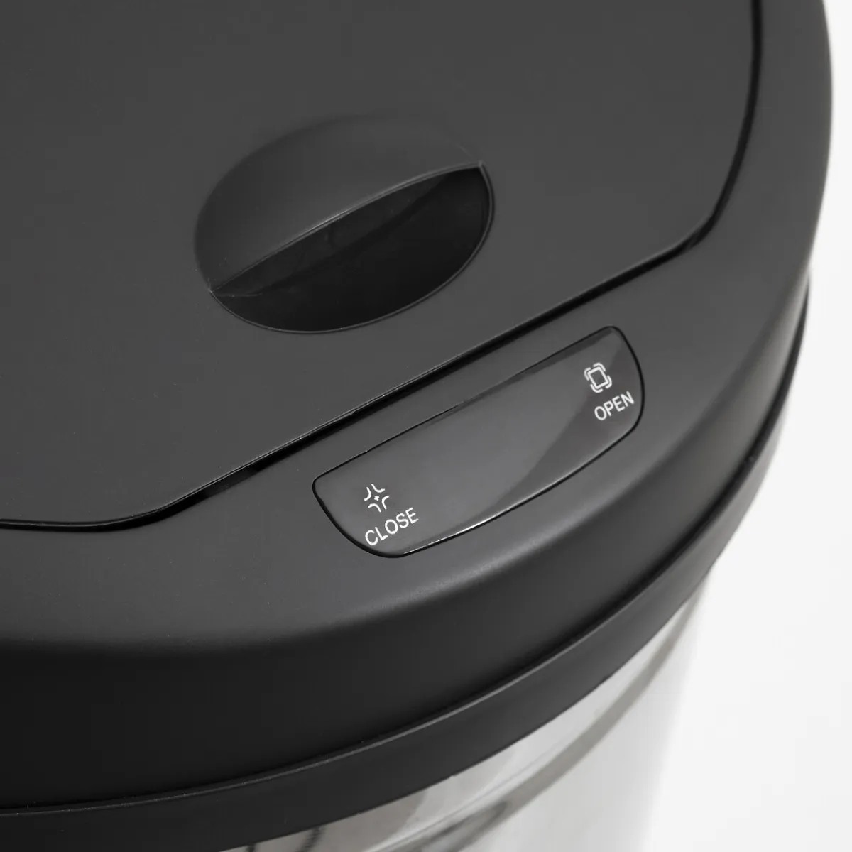 Cubo De Basura Redondo Con Sensor 42L | 62×32.5×32.5cm | Funciona con pilas, 4xLR6 no incluidas | Altura con la tapa abierta: 83cm | Apertura y cierre automático de la tapa al pasar la mano, higiénico y práctico. Botones táctiles para abrir y cerrar. Botón de encendido/apagado | Cuida de la higiene y de la limpieza de tu hogar con los accesorios y productos adecuados, para que disfrutes siempre de un ambiente limpio y sano. En la sección de Limpieza de las tiendas hôma encontrarás todos los productos y utensilios de limpieza que tu hogar necesita | Color: Plateado, Negro | Medidas: 62×32.5cm | Material: Acero Inoxidable, Abs | Capacidad: 42L | Marca: 5Five