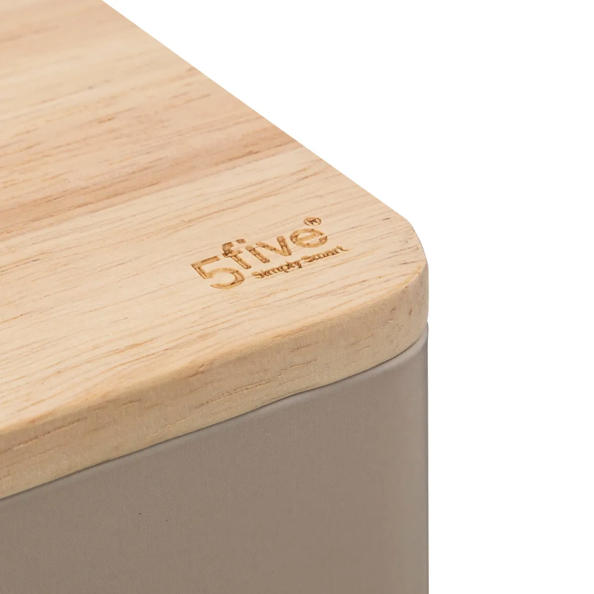 Caja Para Harina Metálica Beige | Tapa de madera de goma FSC. Junta de silicona | ¿Sabías que tu cocina puede ser el lugar más feliz del mundo? Descubre nuestra gama de utensilios para una cocina llena de Happy Home Living. ¡Cocinar con los utensilios adecuados es mucho más fácil! | Color: Beige | Medidas: 19.3×10.7cm | Material: Metal, Madera | Marca: 5Five