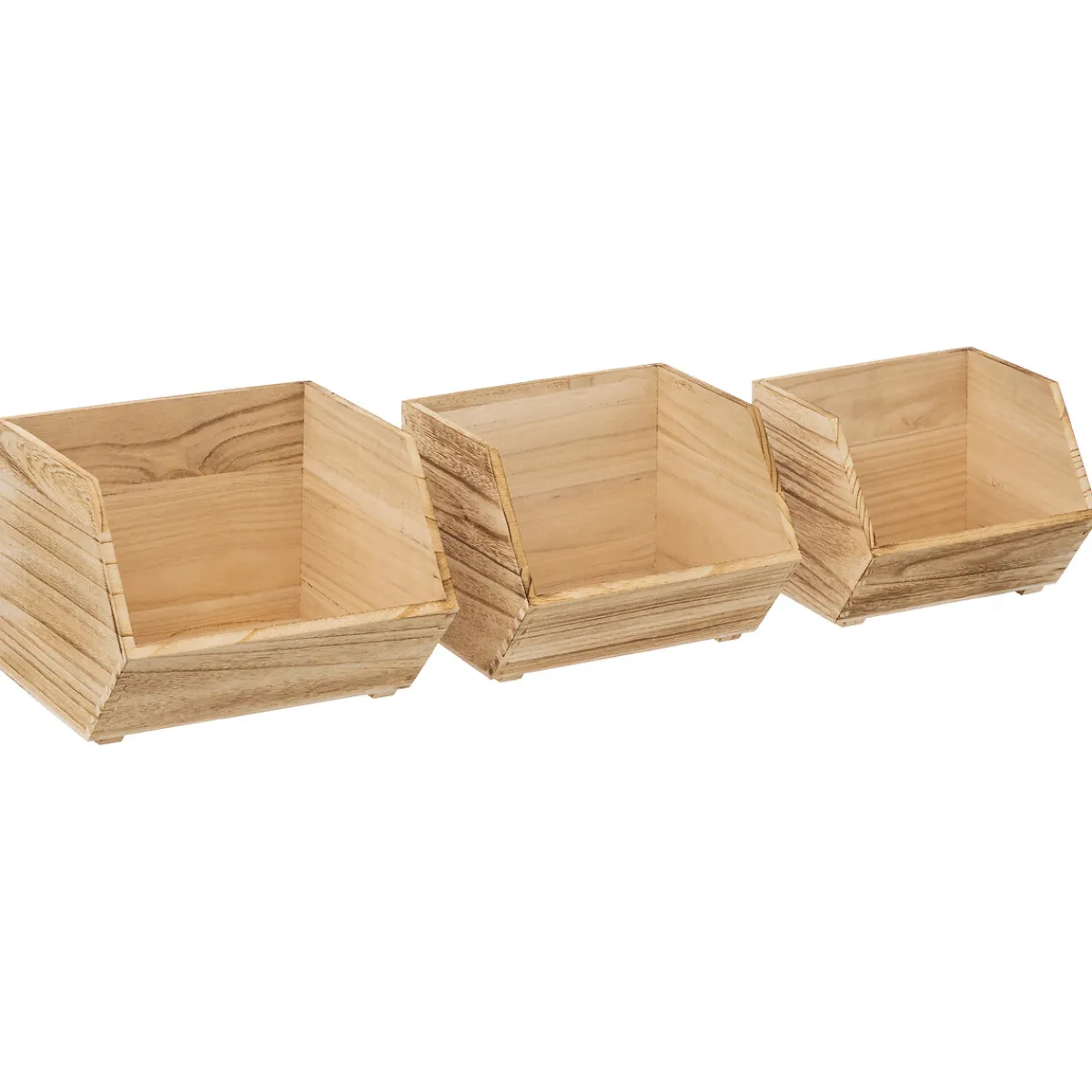 Conjunto de 3 cajas de organización de madera | Conjunto de 3: L. 29×27,8×22,8cm | M. 25,8×24,5×21,1cm | S. 23×21,7×19,4cm | ¿Sabía que su cocina puede ser el lugar más feliz del mundo? Descubra nuestra gama de utensilios para una cocina llena de Happy Home Living. ¡Cocinar con los utensilios adecuados es mucho más fácil! | Color: Natural |Material: Madera Paulownia | Marca: 5Five