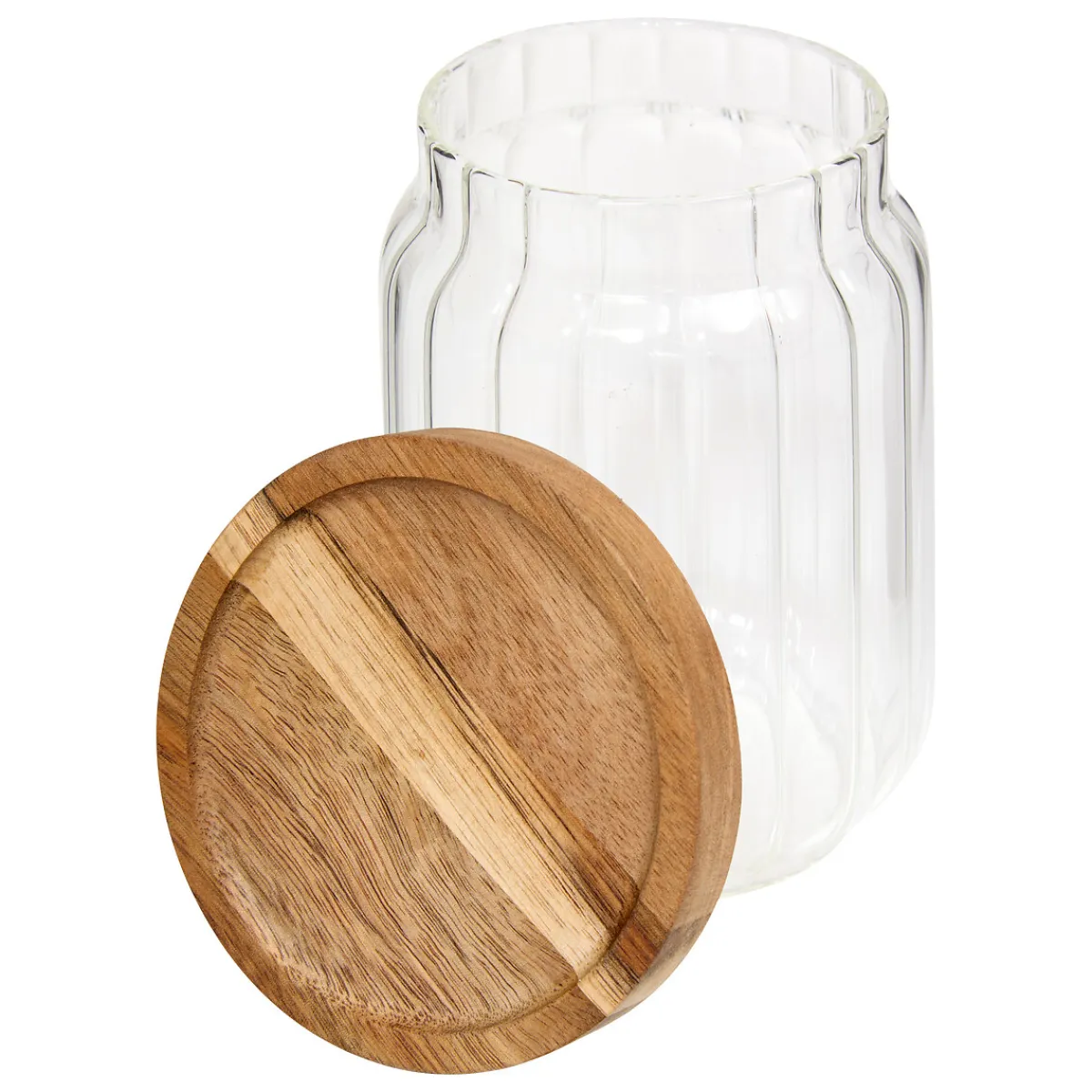 Tarro HARMONY con tapa 0,5L | ¿Sabías que tu cocina puede ser el lugar más feliz del mundo? Descubre nuestra gama de utensilios para una cocina llena de Happy Home Living. ¡Cocinar con los utensilios adecuados es mucho más fácil! | Color: Transparente | Medidas: 12.3x9cm | Material: Vidrio, Madera de Acacia | Capacidad: 0.5L