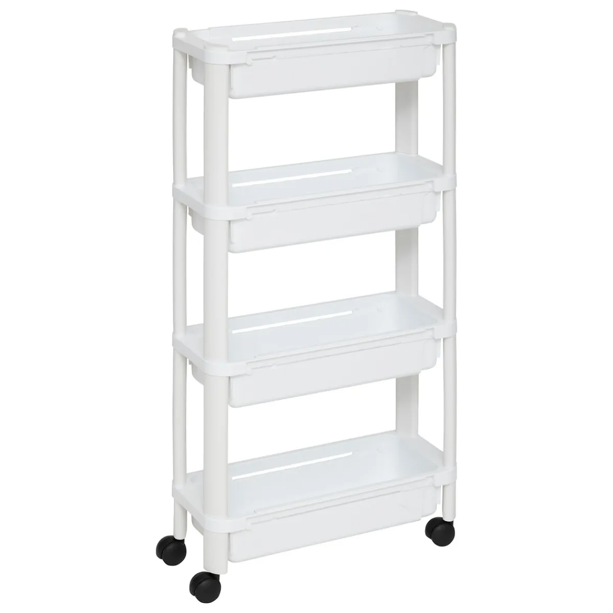 Carrito De Cocina Con 4 Cestos Extensibles Blanco | 78.5x15x37.5cm | La funcionalidad de la cocina es esencial y comienza por las soluciones de organización en la cocina. Desde el carrito auxiliar , la botellera, los cubos de basura, hasta cubos de reciclaje, encuentra todo en homastores.com | Color: Blanco | Medidas: 78.5x15x37.5cm | Material: Plástico | Marca: 5Five