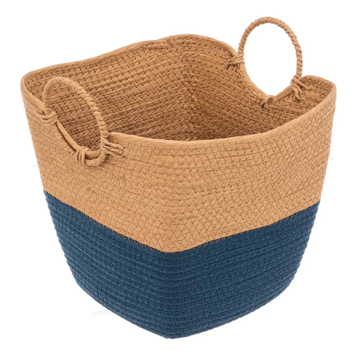Cesto De Almacenaje Baño Solar Azul Petróleo | 36×32.5x37cm | Los accesorios de Baño y de organización son esenciales para que las rutinas más personales te proporcionen todo el bienestar que mereces. Conoce nuestra nueva colección de accesorios de baño. | Color: Azul petróleo, Beige | Medidas: 36×32.5x37cm | Material: Papel, Poliéster, Algodón | Marca: 5Five