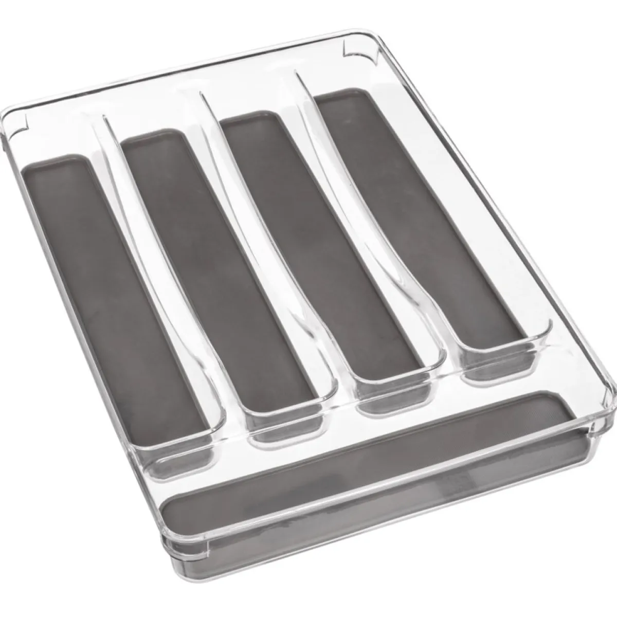 Cubertero 5 Compartimentos | 32.5×23.2×4.5cm | La funcionalidad en la cocina es esencial y comienza con las soluciones de almacenamiento para la cocina. Desde el carrito multiusos, al botellero o los cubos de basura y reciclaje, encuéntralo todo en homa.es | Color: Gris, Transparente | Medidas:32.5×23.2×4.5cm | Material: Tpe | Marca: 5Five