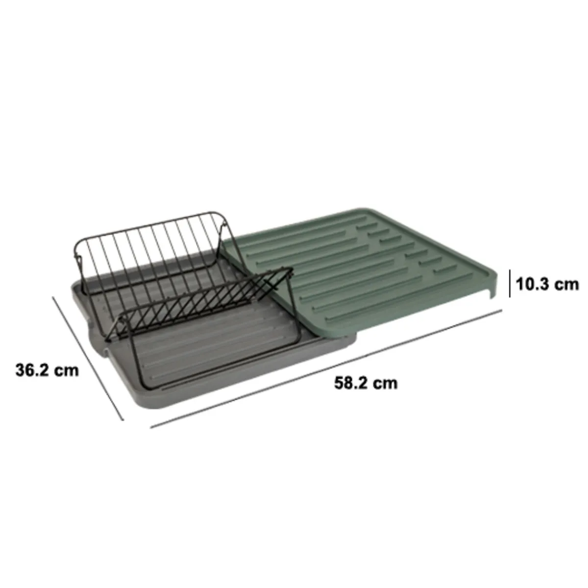 Escurreplatos extensible NÉO | ¿Sabías que tu cocina puede ser el lugar más feliz del mundo? Descubre nuestra gama de utensilios para una cocina llena de Happy Home Living. ¡Cocinar con los utensilios adecuados es mucho más fácil! | Color: Verde, Gris | Medidas: 10.3×36.2×58.2cm | Material: Polipropileno, Metal | Marca: 5Five