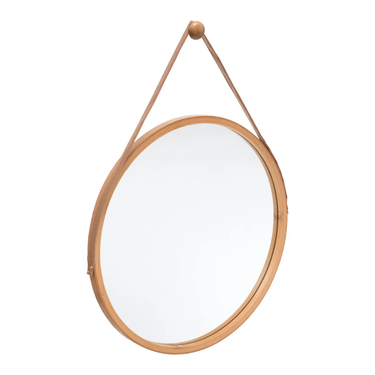 Artículo sólo disponible para recogida en tienda o recogida en tienda en 24 horas. Espejo De Baño Bambú Con Asa De Cuero | 38cm | Los accesorios de Baño y de organización son esenciales para que las rutinas más personales te proporcionen todo el bienestar que mereces. Conoce nuestra nueva colección de accesorios de baño | Color: Marrón | Medidas: 38cm | Material: Bambú, Vidrio, Cuero | Marca: 5Five