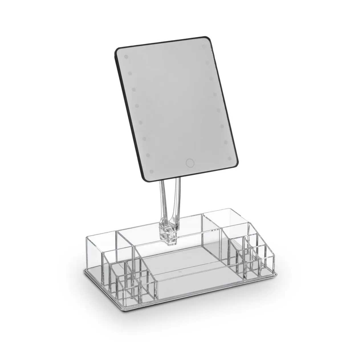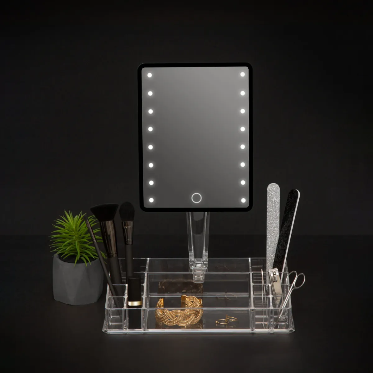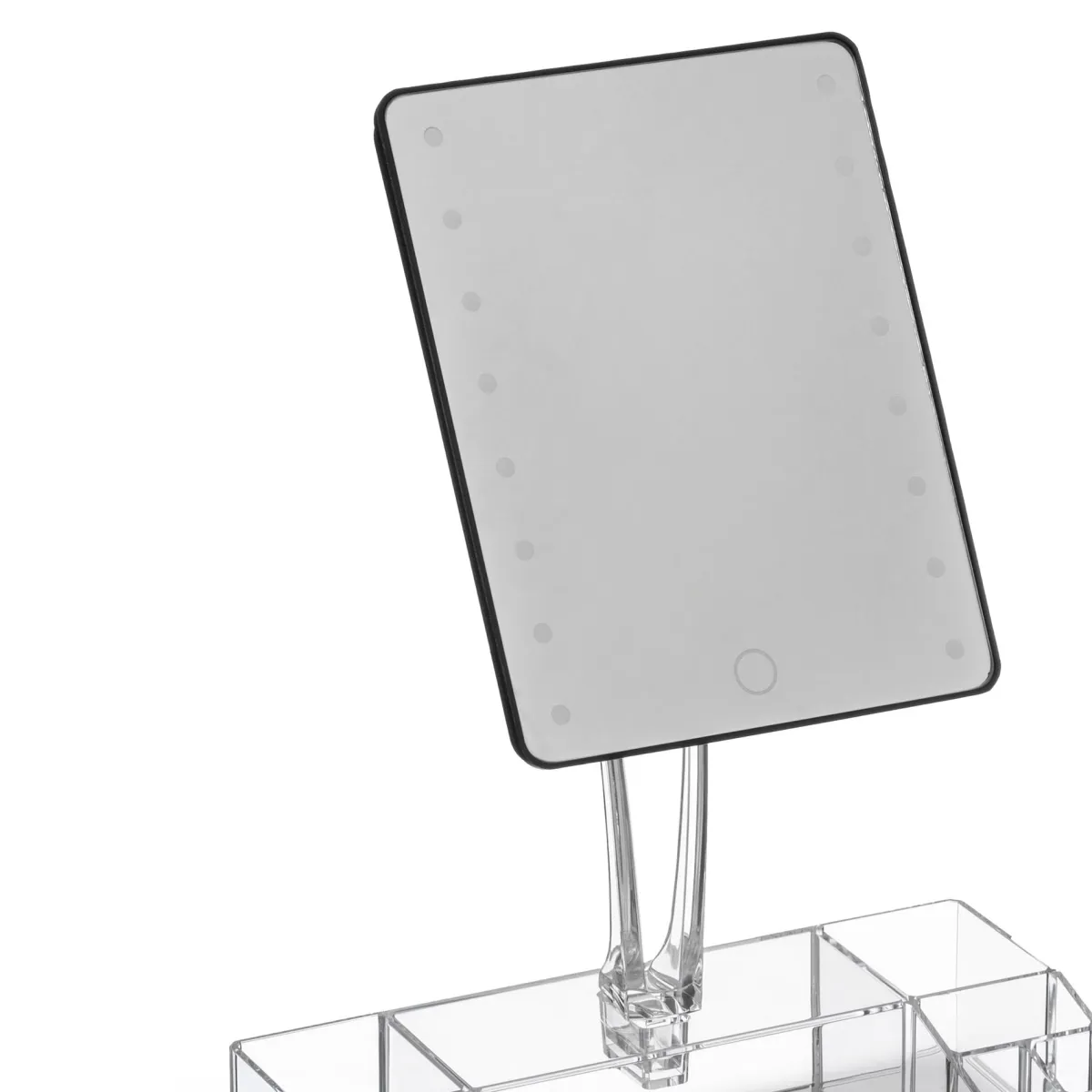 Espejo Led Con Almacenaje Para Joyas Selena | Funciona con 4 pilas LR6 / AA, no incluidas | Espejo con Luz Organizadora: – Giratorio 90° – 16 LEDS – con 13 unidades de almacenamiento | Los accesorios y la organización del baño son esenciales para que tus rutinas más personales te traigan todo el bienestar que te mereces | ¡Conoce nuestra colección de accesorios para el baño! | Color: Transparente | Medidas: 38x16x28cm | Material: Polipropileno | Marca: 5Five