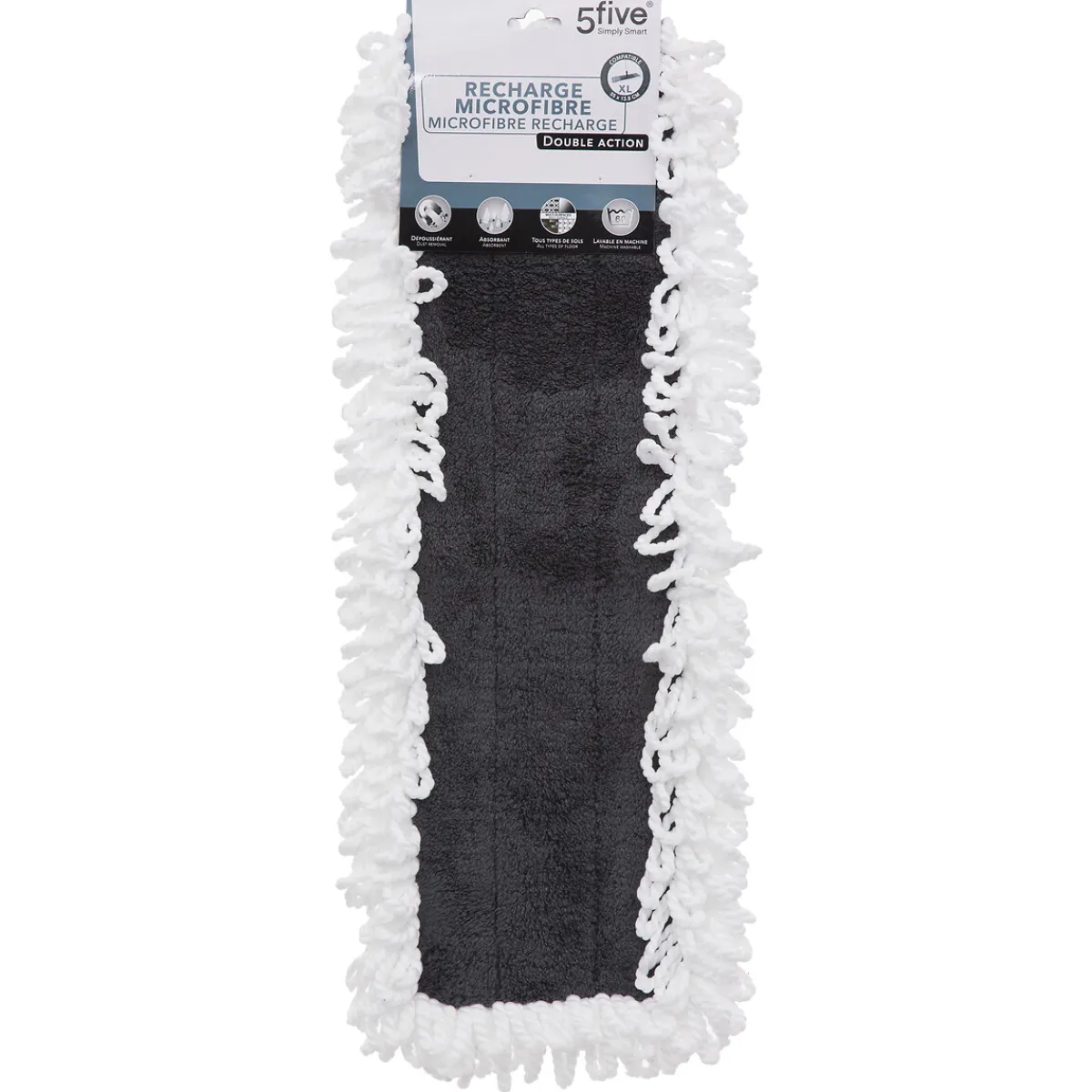 Recambio Para Fregona XL 2 En 1 | Compatible con 447394 mopa de microfibra 2 en 1: microfibra de chenilla para eliminar mucho polvo microfibra lisa para un acabado perfecto | Color: Gris oscuro, Blanco | Medidas: 64x21cm | Material: Microfibra | Marca: 5Five