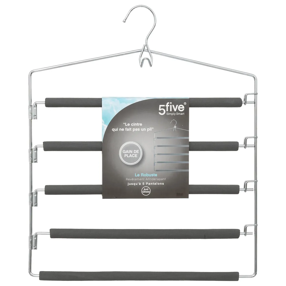 5five Perchas Y Travesaños>Percha Gris Para 5 Pantalones