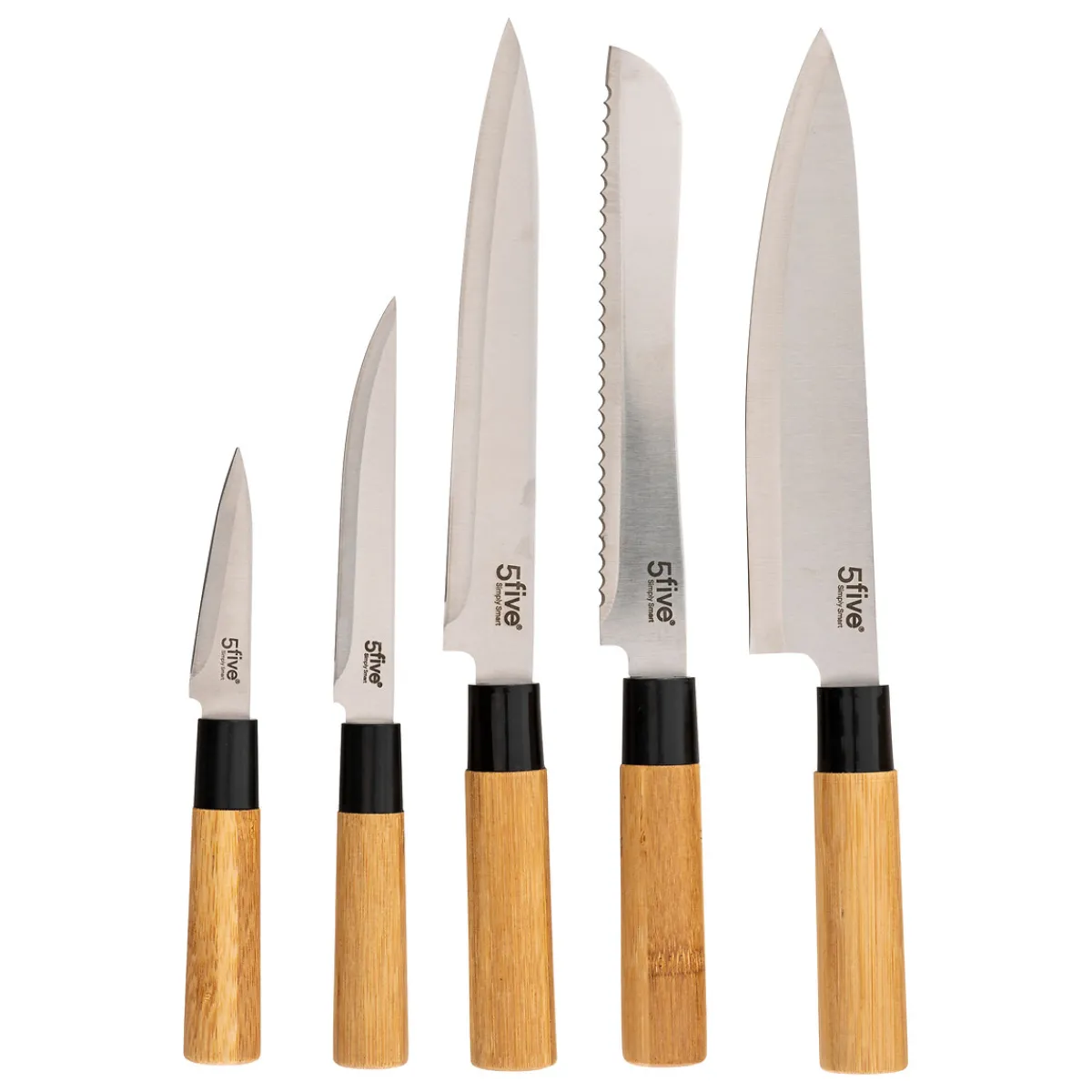 5five Placas Calefactoras Y Tablas De Cortar>Cuchillos+Utensilios C/Soporte De Bambú