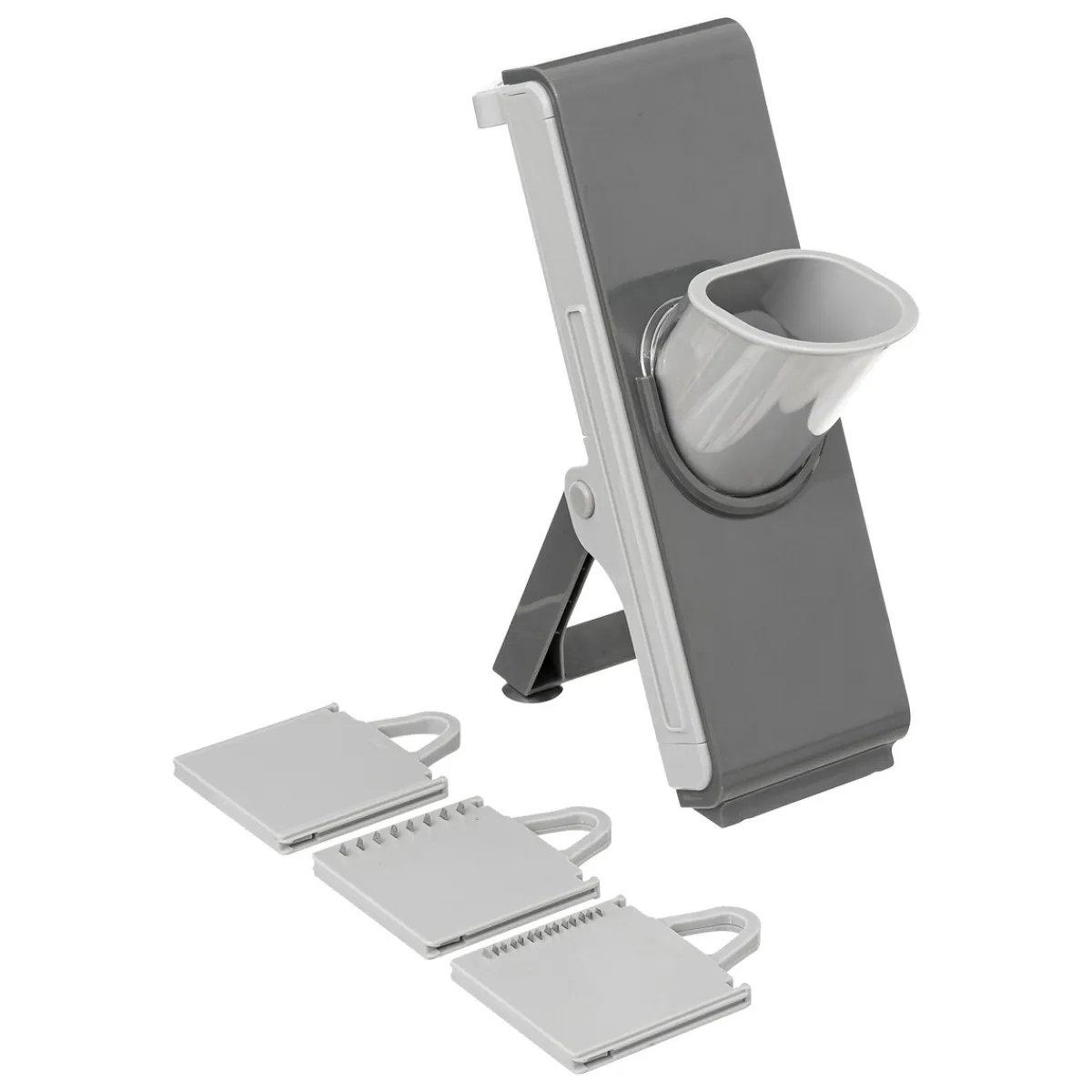 Mandolina Multicorte Gris | Mango con resorte para maximizar la fuerza de corte. Mecanismo vertical combinado con cuchillas ultra afiladas que cortan fácilmente todos los alimentos. Sistema de cambio de cuchillas mediante pulsador para evitar accidentes. 3 cuchillas que permiten varios cortes con diferentes grosores. ¿Sabías que tu cocina puede ser el lugar más feliz del mundo? Descubre nuestra gama de utensilios para una cocina llena de Happy Home Living. ¡Cocinar con los utensilios adecuados es mucho más fácil! | Color: Gris | Medidas: 15×26.5×9.5cm | Material: ABS | Marca: 5Five