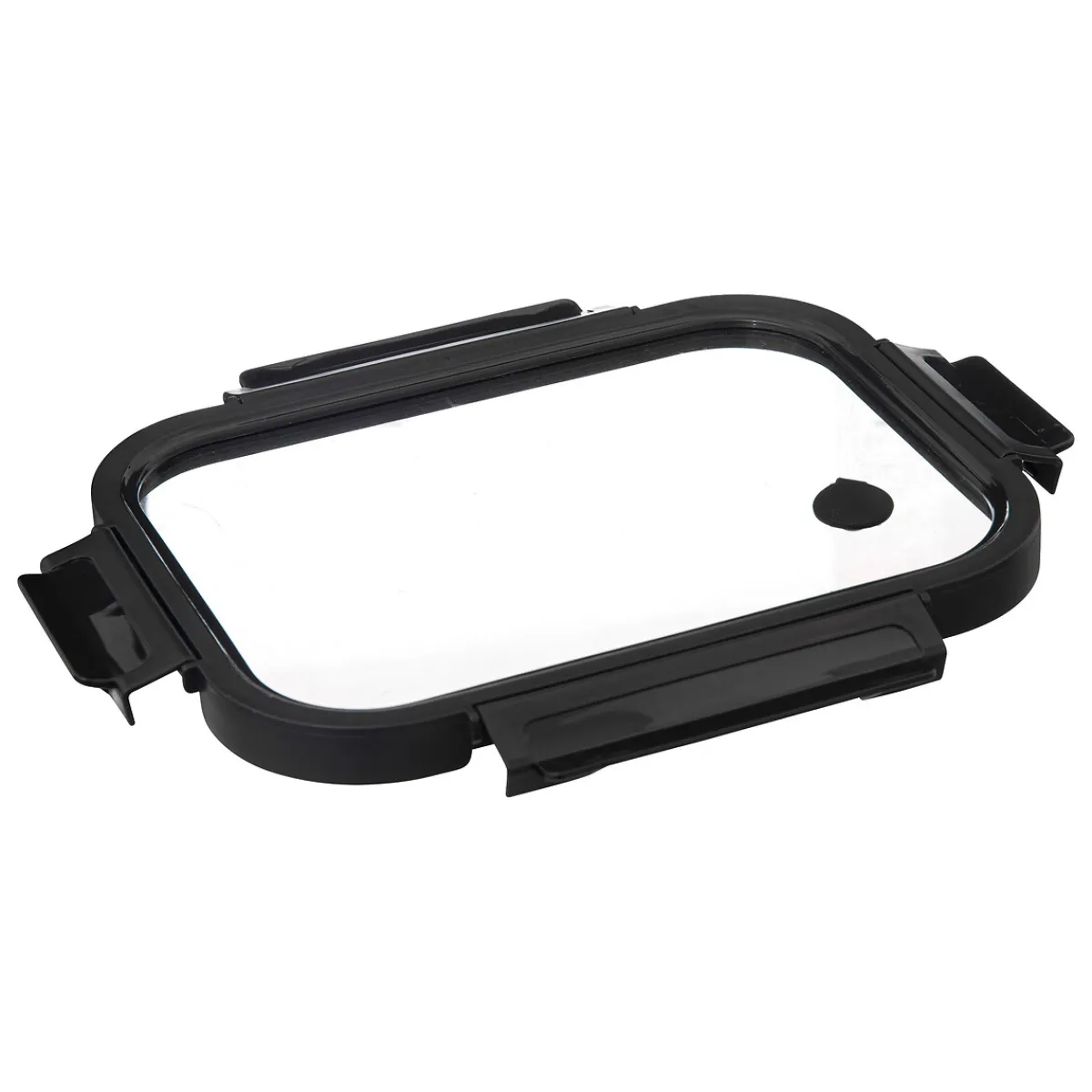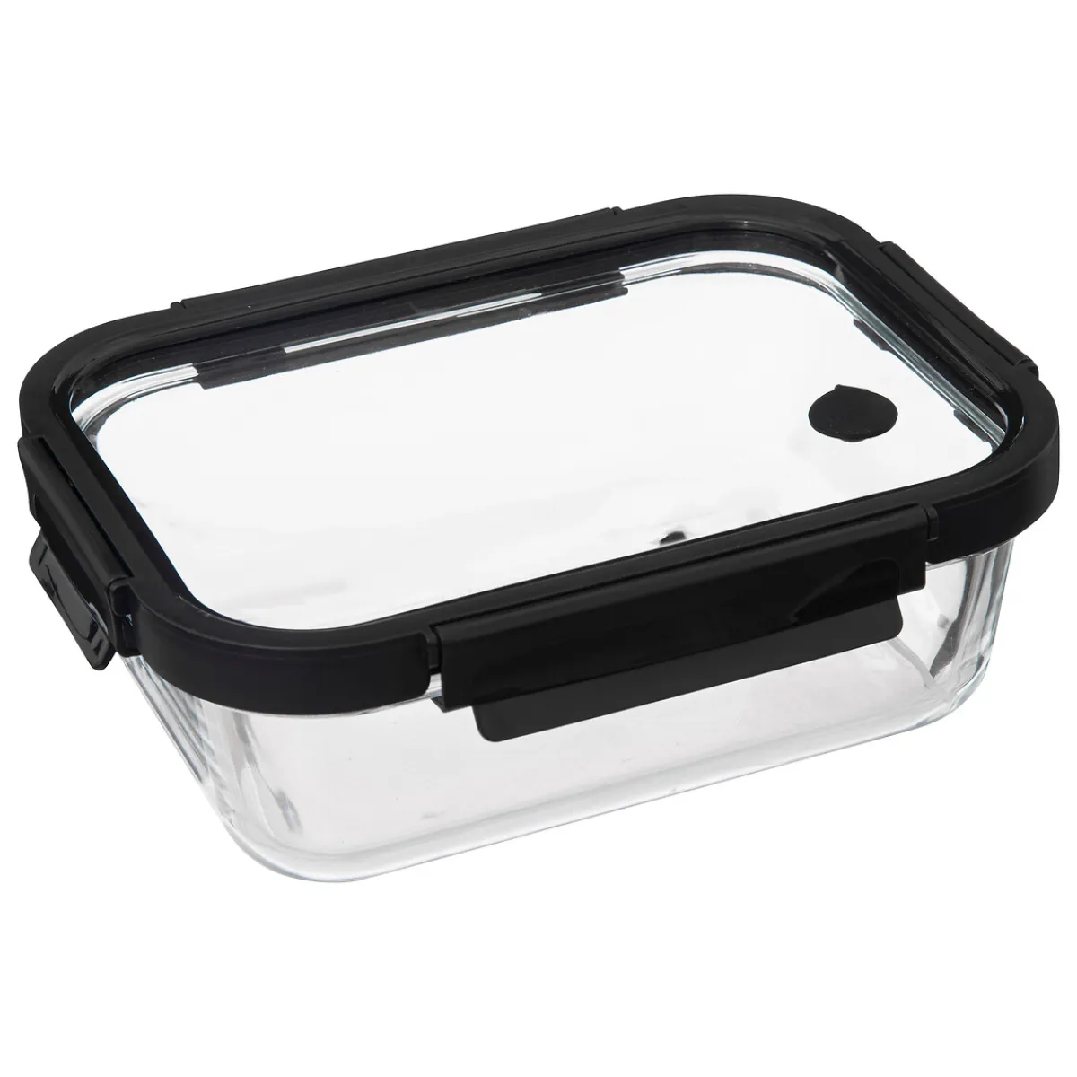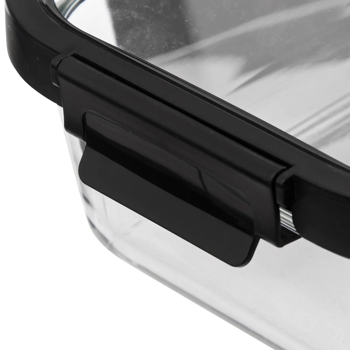 Hermético Rectangular Vidrio 1.3L| Caja hermética de vidrio borosilicato de 1.3L con tapa de vidrio templado. Tapa con cierre hermético de clip. Válvula de ventilación ideal para su uso en microondas. ¿Sabías que tu cocina puede ser el lugar más feliz del mundo? Descubre nuestra gama de utensilios para una cocina llena de Happy Home Living. ¡Cocinar con los utensilios adecuados es mucho más fácil! | Color: Negro, Transparente | Medidas: 7.9×23.7×18.5cm | Material: Vidrio | Capacidad: 1.3L | Marca: 5Five