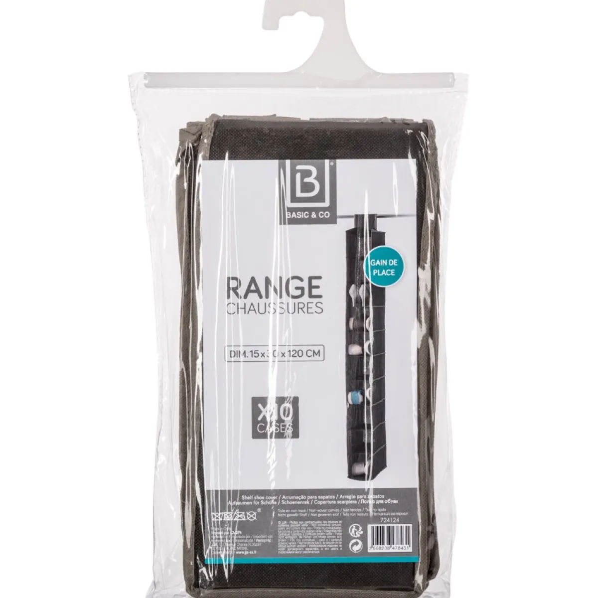 Zapatero Colgante En Tejido Con 10 Compartimentos | Conoce este y más artículos que tenemos disponibles para tu vestidor. ¡Ordenar y organizar tus armarios y vestidores nunca ha sido tan fácil! Descubre la gama de almacenaje hôma | Color: Negro | Medidas: 37x17x5cm | Capacidad: 10 Compartimentos | Material: Polipropileno, Cartón | Marca: 5Five | Colección: Vestidor