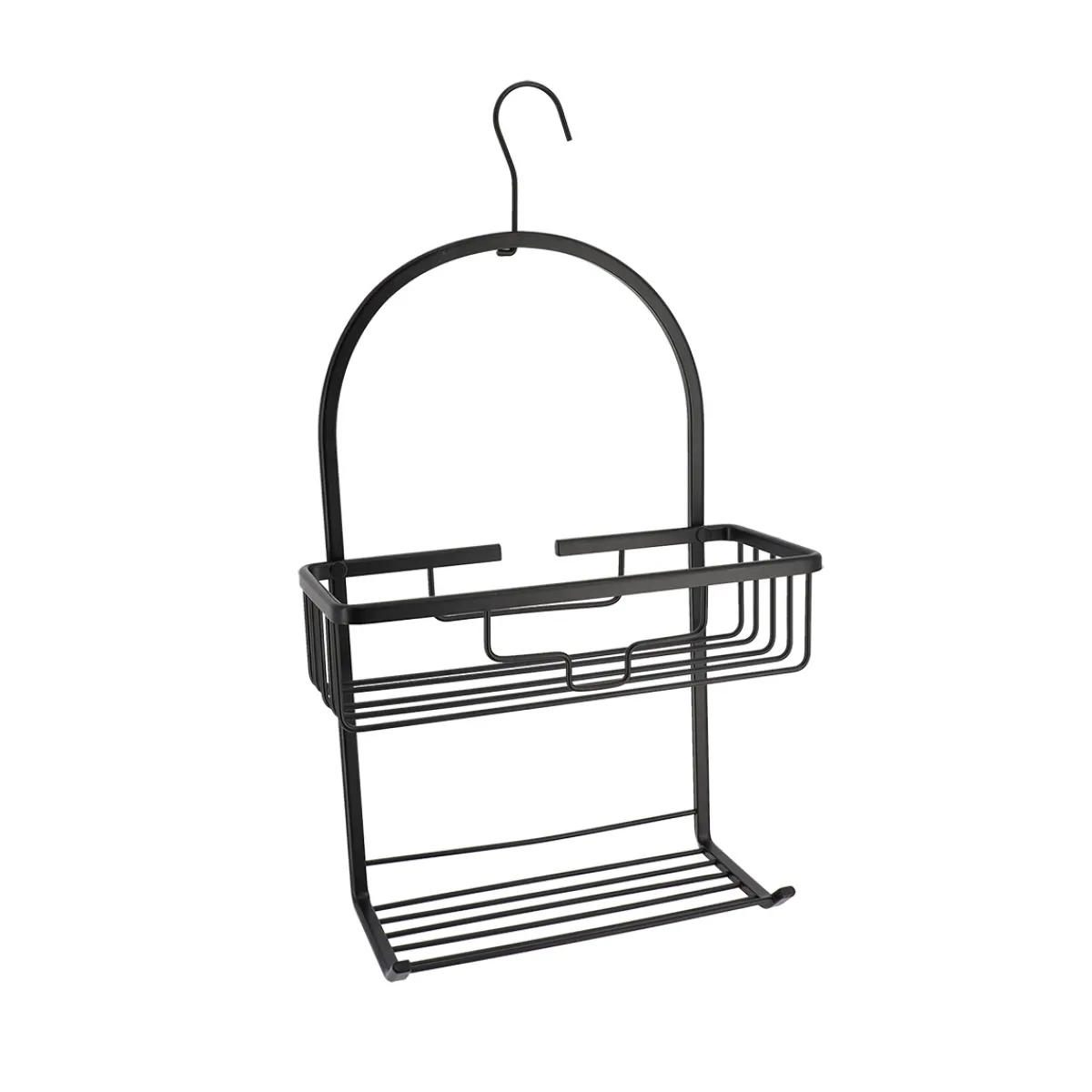Soporte De Ducha Negro Con Gancho | 49.5x28x12.5cm | Los accesorios de Baño y de organización son esenciales para que las rutinas más personales te proporcionen todo el bienestar que mereces. Conoce nuestra nueva colección de accesorios de baño | Color: Negro | Medidas: 49.5x28x12.5cm | Material: Metal