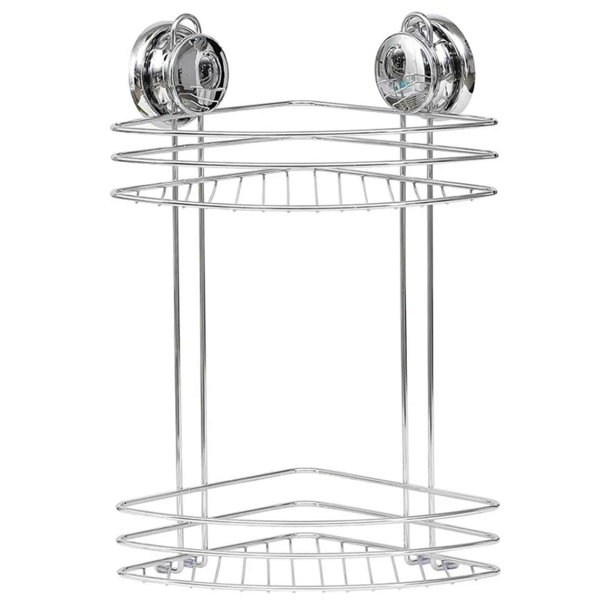 Soporte Esquina Con 2 Estantes Y Ventosa | Los accesorios y la organización del baño son esenciales para que tus rutinas más personales te traigan todo el bienestar que te mereces. ¡Conoce nuestra colección de accesorios para el baño! | Color: Plateado | Medidas: 41×22.5x21cm | Material: Metal