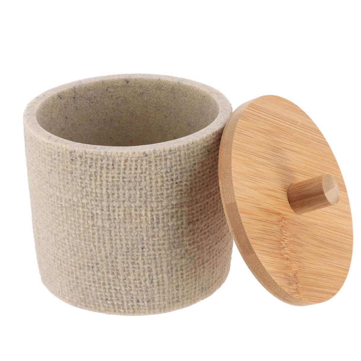 Bote para algodones efecto malla natural con tapa de bambú | 11.5x10cm | Los accesorios de Baño y de organización son esenciales para que las rutinas más personales te proporcionen todo el bienestar que mereces. Conoce nuestra nueva colección de accesorios de baño | Color: Natural | Medidas: 11.5x10x10cm | Material: Poliresina, Bambú