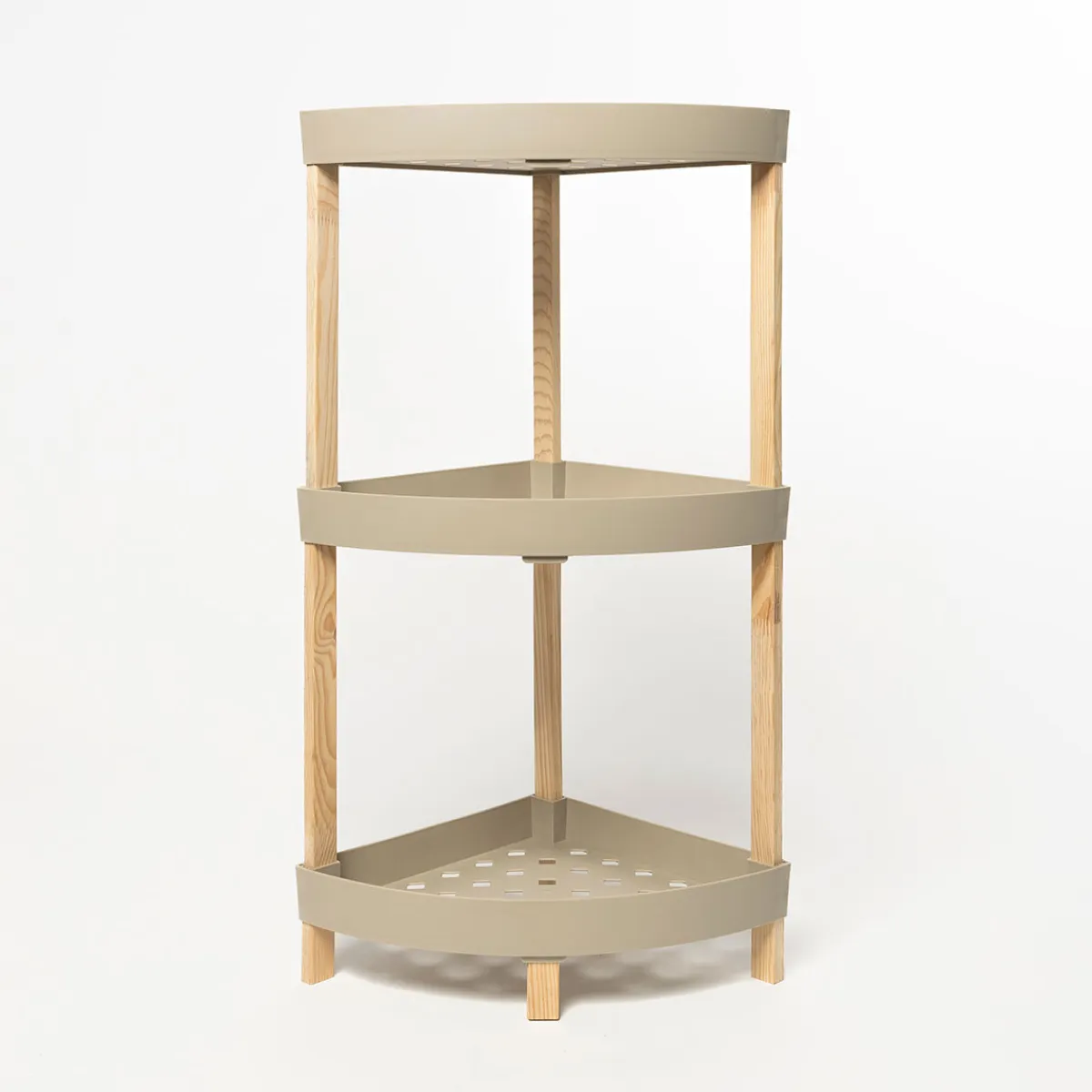 Estante esquinero con 3 niveles beige de madera | 66x34x34cm | Descubre este y otros artículos que tenemos disponibles para tu hogar. !Ordenar y organizar nunca há sido tan fácil! Descubre nuestra gama de organización hôma. | Color: Beige | Medidas: 66x34x34cm | Material: Madera y Plástico