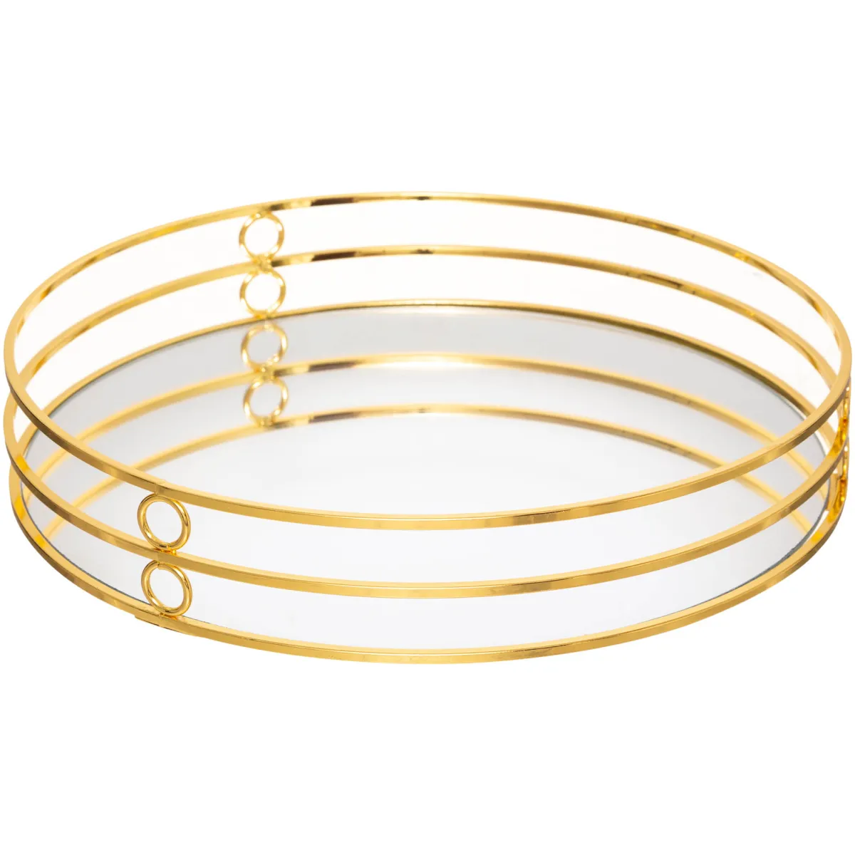 Bandeja de vidrio con espejo FEEL dorada de metal 20cm | En hôma encontrarás los mejores complementos decorativos para tu hogar | Medidas: 3x20cm | Material: Metal, Espejo | Color: Dorado | Marca: Atmosphera