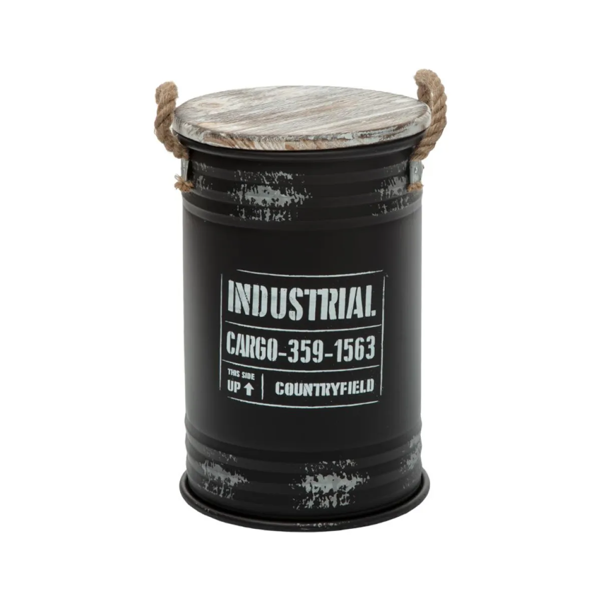 Bote Negro Metálico Con Tapa Tamaño 1/3 | En hôma encontrarás los mejores complementos decorativos para tu hogar | Color: Negro, Marrón claro | Medidas: 42×26.6cm | Material: Hierro, Madera