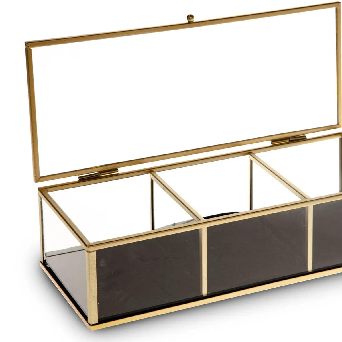 Joyero Dorado De Metal Y Vidrio | 6.7×10.5x25cm | En hôma encontrarás los mejores complementos decorativos para tu hogar | Color: Negro, Dorado | Medidas: 6.7×10.5x25cm | Material: Vidrio, Hierro, Poliéster | Marca: Atmosphera