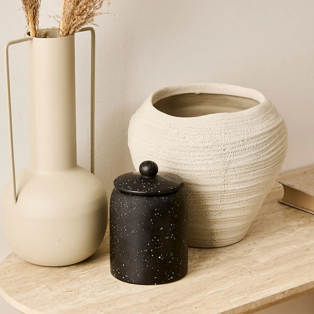 Tarro decorativo WONJ negro 15x10cm | En hôma encontrarás los mejores complementos decorativos para tu hogar. Descubre cuál te gusta más… ¡es tuyo! | Color: Negro | Medidas: 15x10x10cm | Material: Cerámica | Marca: Atmosphera