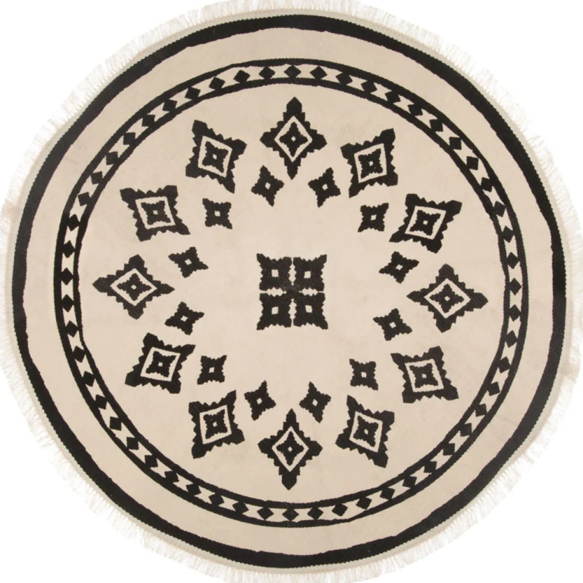 Alfombra Étnico Nomade D90cm | ¡En homastores.com encontrarás alfombras para toda tu casa! Alfombras de salón, alfombras de dormitorio, alfombras redondas, etc.Tus pies te lo agradecerán y el espacio ganará una nueva dimensión con nuestras propuestas de decoración para el suelo | Color: Negro, Crudo | Medidas: 90cm diámetro | Material: Algodón, Poliéster, Viscosa