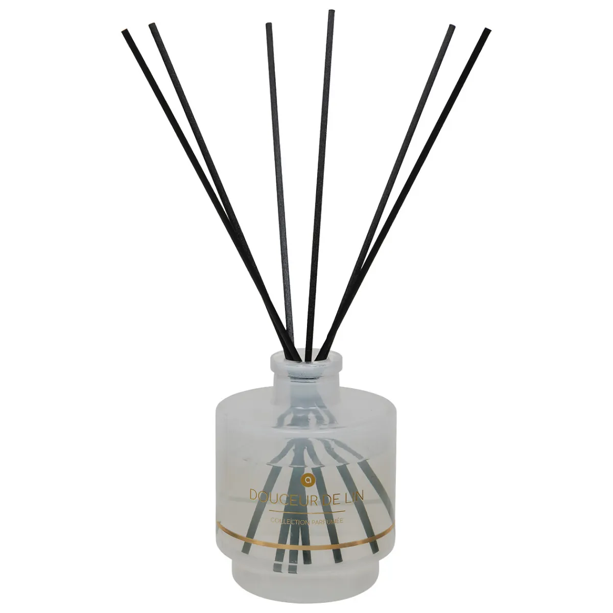 Ambientador mikado flor lino ILAE 200ml | En hôma encontrarás una gran variedad de ambientadores que refrescarán tu hogar. | Color: Blanco | Medidas: 25×7.8cm | Material: Vidrio | Aroma: Flor Lino | Capacidad: 200ml | Marca: Atmosphera