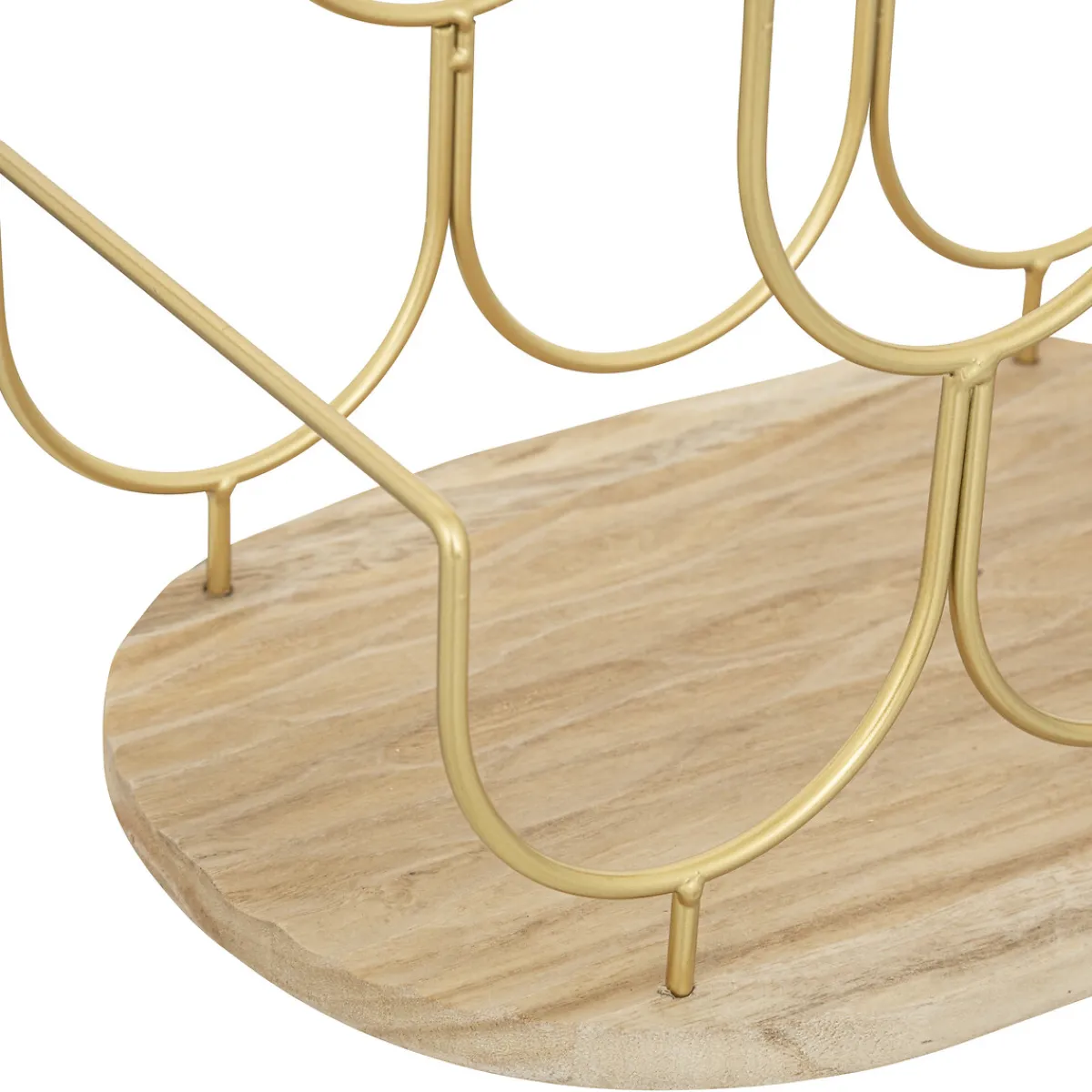 Botellero 6 botellas DOLCE RIVIERA dorado de metal | 28.5×19.5x29cm | En hôma encontrarás los mejores complementos decorativos para tu hogar | Color: Dorado, Marrón | Medidas: 28.5×19.5x29cm | Material: Hierro, Madera | Colección: Dolce Riviera | Marca: Atmosphera