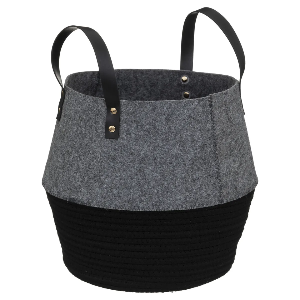 Cesta de fieltro gris y negro SOUL 31cm | En hôma encontrarás una amplia gama de cestas decorativas para tu hogar. | Color: Gris Oscuro, Negro | Medidas: 31×36.5cm | Material: Fieltro, Algodón | Marca: Atmosphera