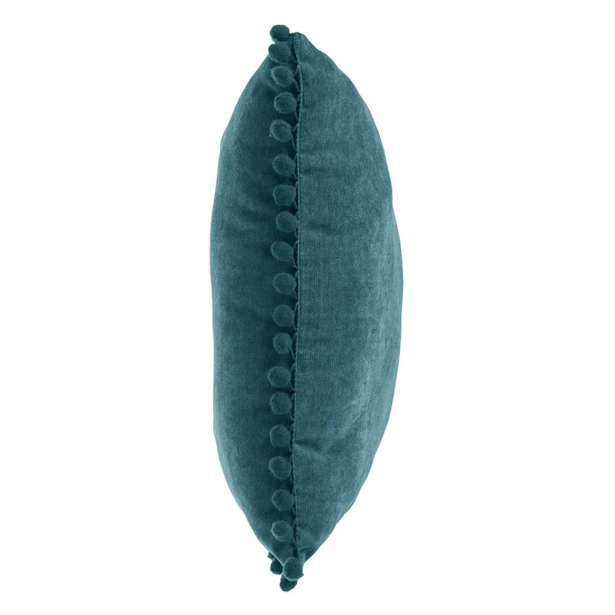 Cojín Azul Con Pompones 40x40cm | La colección textil hôma reúne propuestas únicas para personalizar tu hogar. Desde cojines decorativos y fundas de cojín hasta las mantas más confortables, ¡vive en tu hogar con toda comodidad! | Color: Azul petróleo | Medidas: 40x40cm | Material: Poliéster, Nailon | Marca: Atmopshera