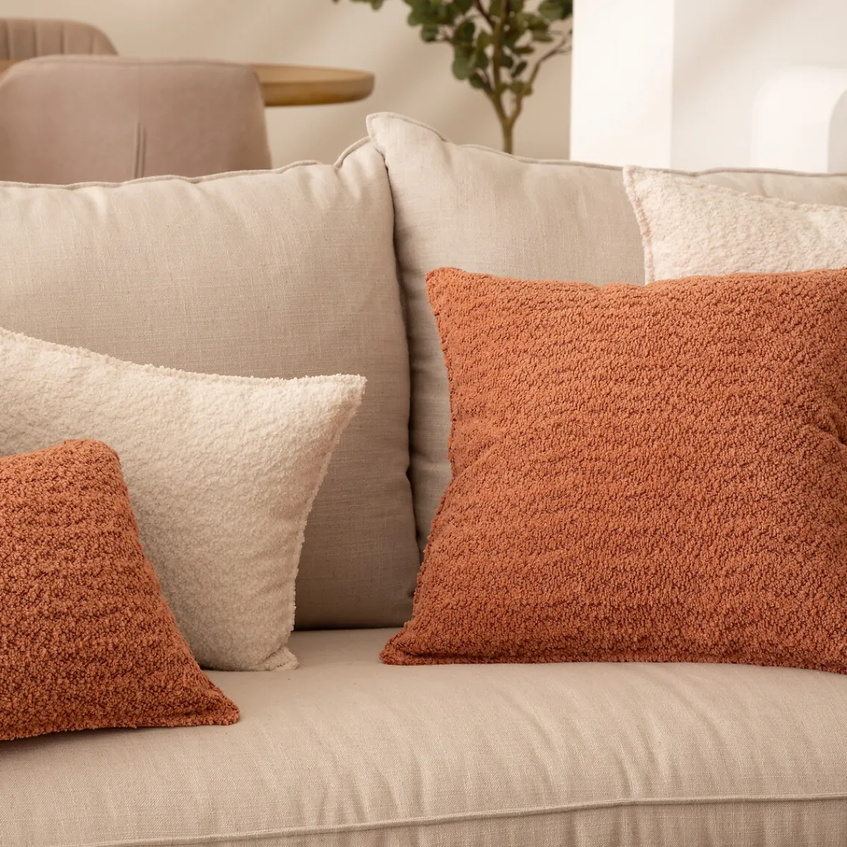 Cojín Bouclette Terracota 45x45cm | La colección textil hôma reúne propuestas únicas para personalizar tu casa. Desde cojines decorativos y fundas de cojín hasta las mantas más confortables, ¡ Vive en tu hogar con comodidad ! | Color: Terracota | Medidas: 0.1x45x45cm | Material: Poliéster | Marca: Atmosphera