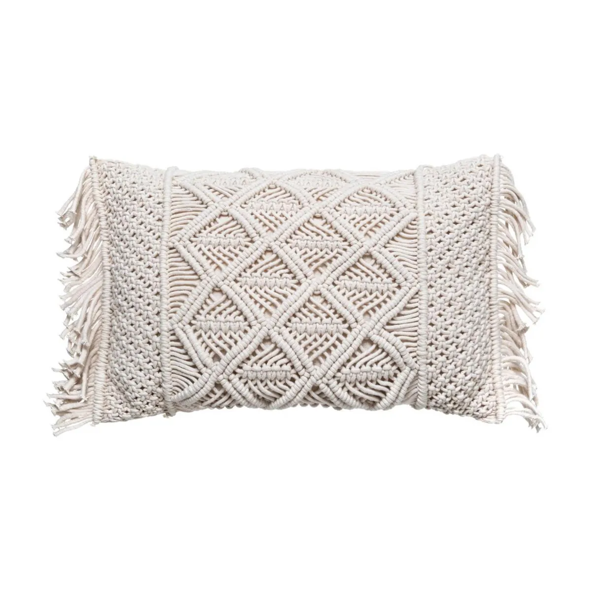 Cojín Idylle Folk De Macramé 30x50cm | La colección textil hôma reúne propuestas únicas para personalizar tu hogar. Desde cojines decorativos y fundas de cojín hasta las mantas más confortables, ¡vive en tu hogar con toda comodidad! | Color: Marfil | Medidas: 30x50cm | Material: Algodón, Poliéster | Marca: Atmosphera
