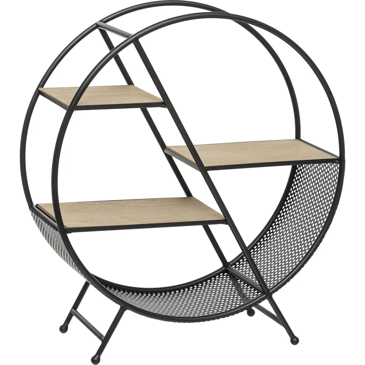 Estante Redondo Timeo C/3 Baldas | 50x18x55.8cm | Con estructura metálica y baldas de madera | Conoce los muebles auxiliares que tenemos para ti. El mobiliario hôma fue pensado para Home Happy Living. Los mejores artículos de decoración están aquí | Color: Negro, Marrón claro | Medidas: 50x18x55.8cm | Material: Hierro, MDF | Marca: Atmosphera