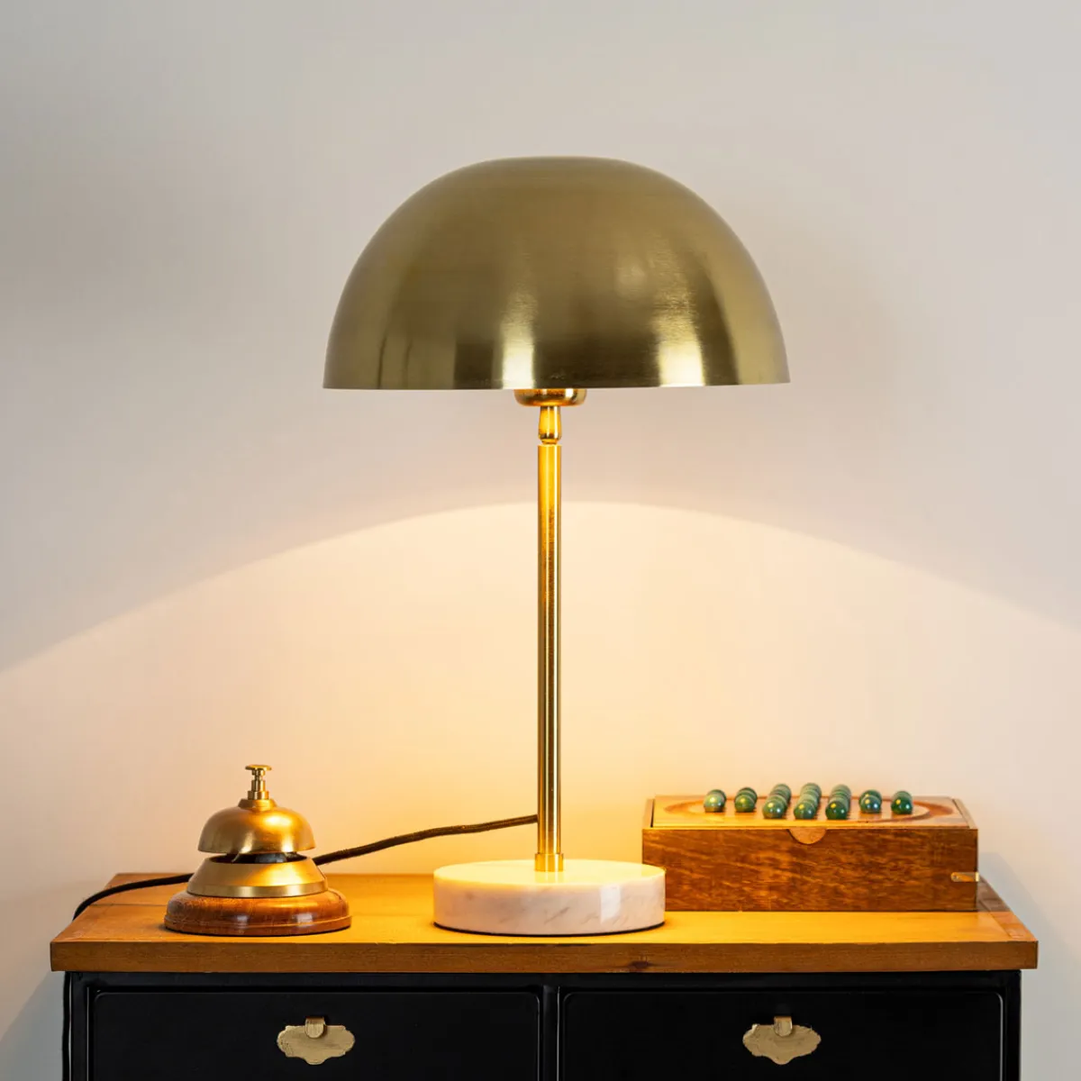 Lámpara De Mesa De Metal Dorada Con Base De Mármol | Bombilla No Incluida | Casquillo: E27 | Potencia máxima: 25W | Descubre este y otros artículos de iluminación de hôma para iluminar y decorar tu hogar. | Color: Dorado | Medidas: 46x30x30cm | Material: Metal, Mármol | Marca: Atmosphera