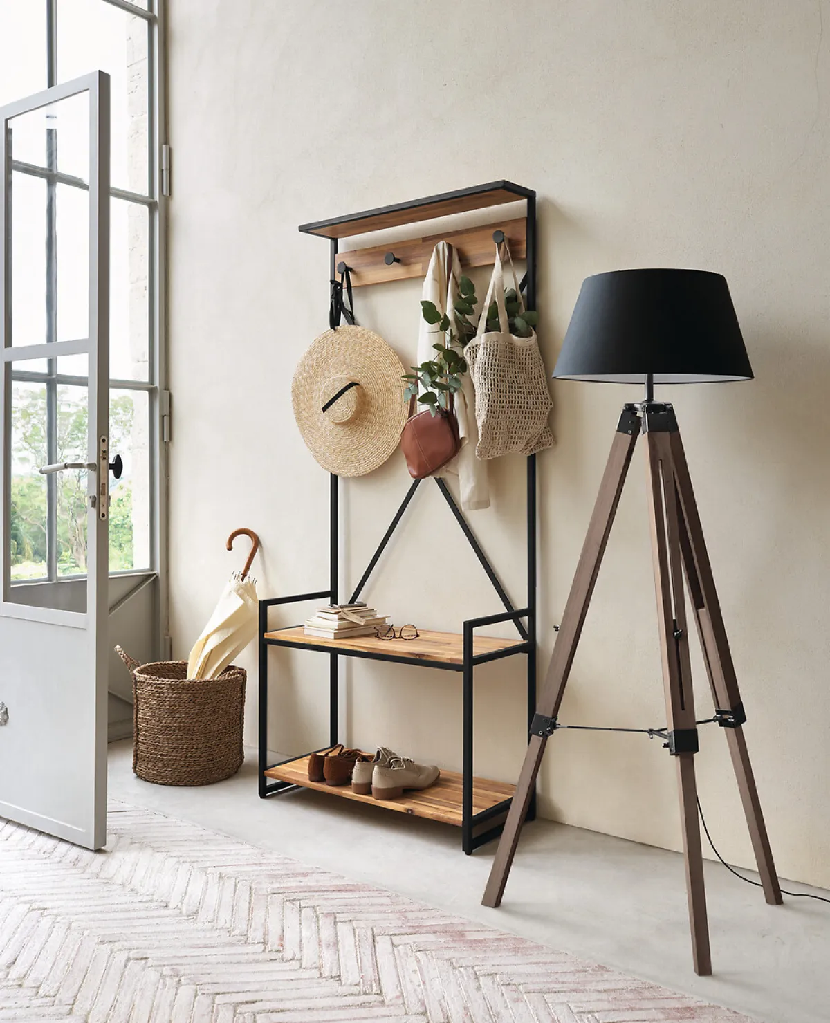 Lámpara De Pie Runo Negra Trípode 145cm | Bombilla no incluida | Alimentación: red eléctrica | Portalámpara E27, Potencia 40W | Longitud del cable: 300cm | Descubre este y otros artículos de iluminación en hôma para iluminar y decorar tu hogar | Color: Negro | Medidas: 145x59x65cm | Material: Madera de pino, Poliéster, Plástico, Metal | Colección: Industrial | Marca: Atmosphera
