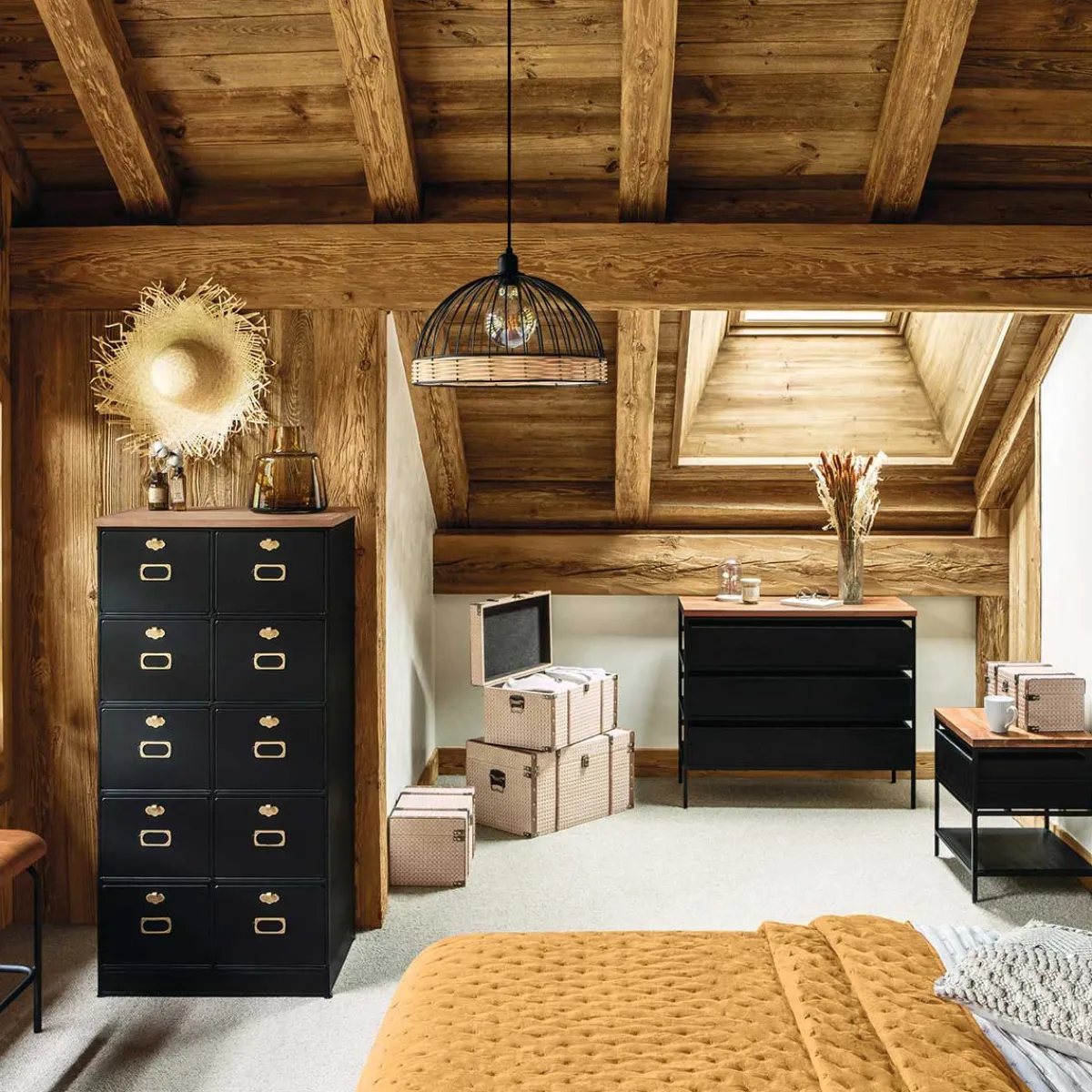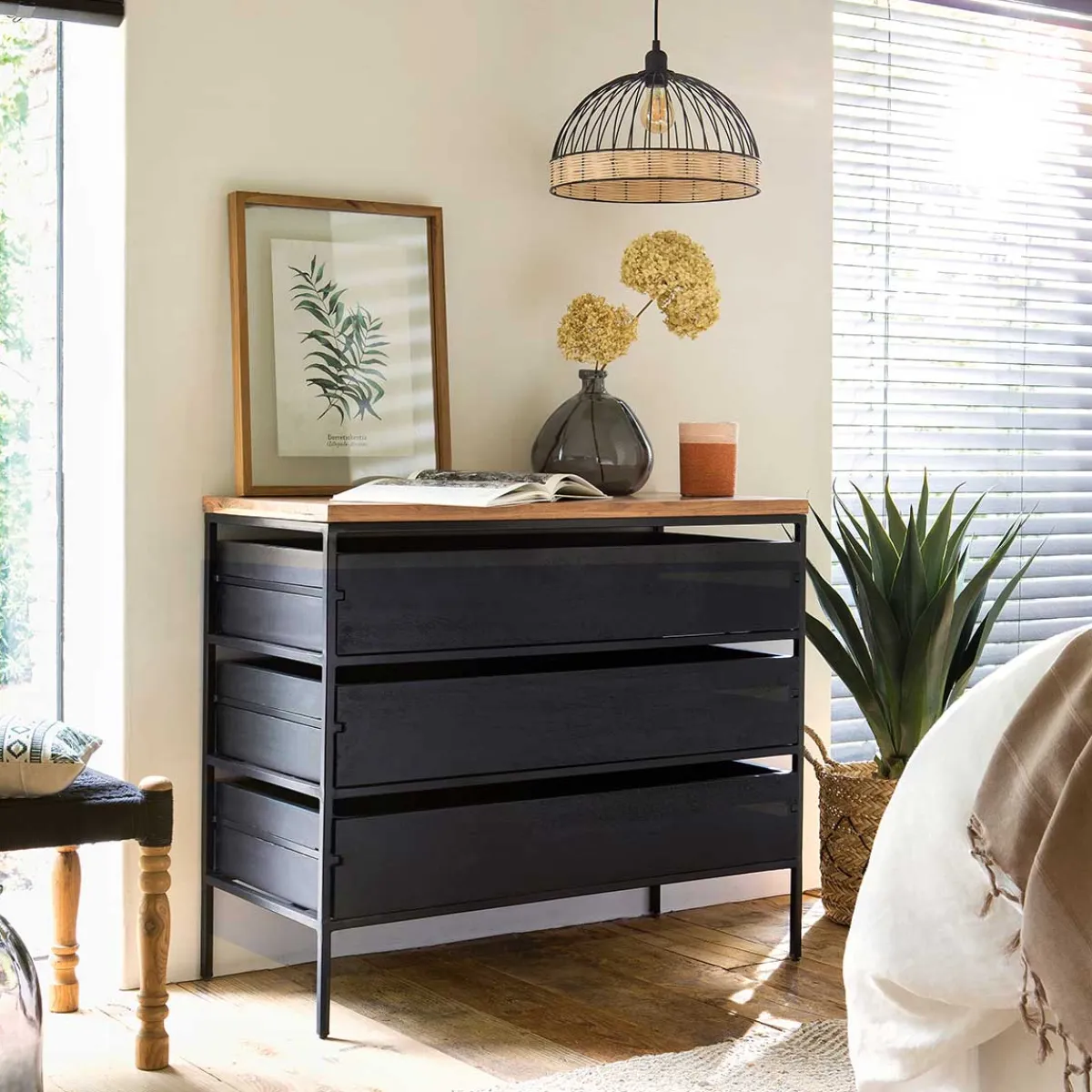 atmosphera Lámparas De Techo>Lámpara De Techo De Ratán Negra 35x25Cm