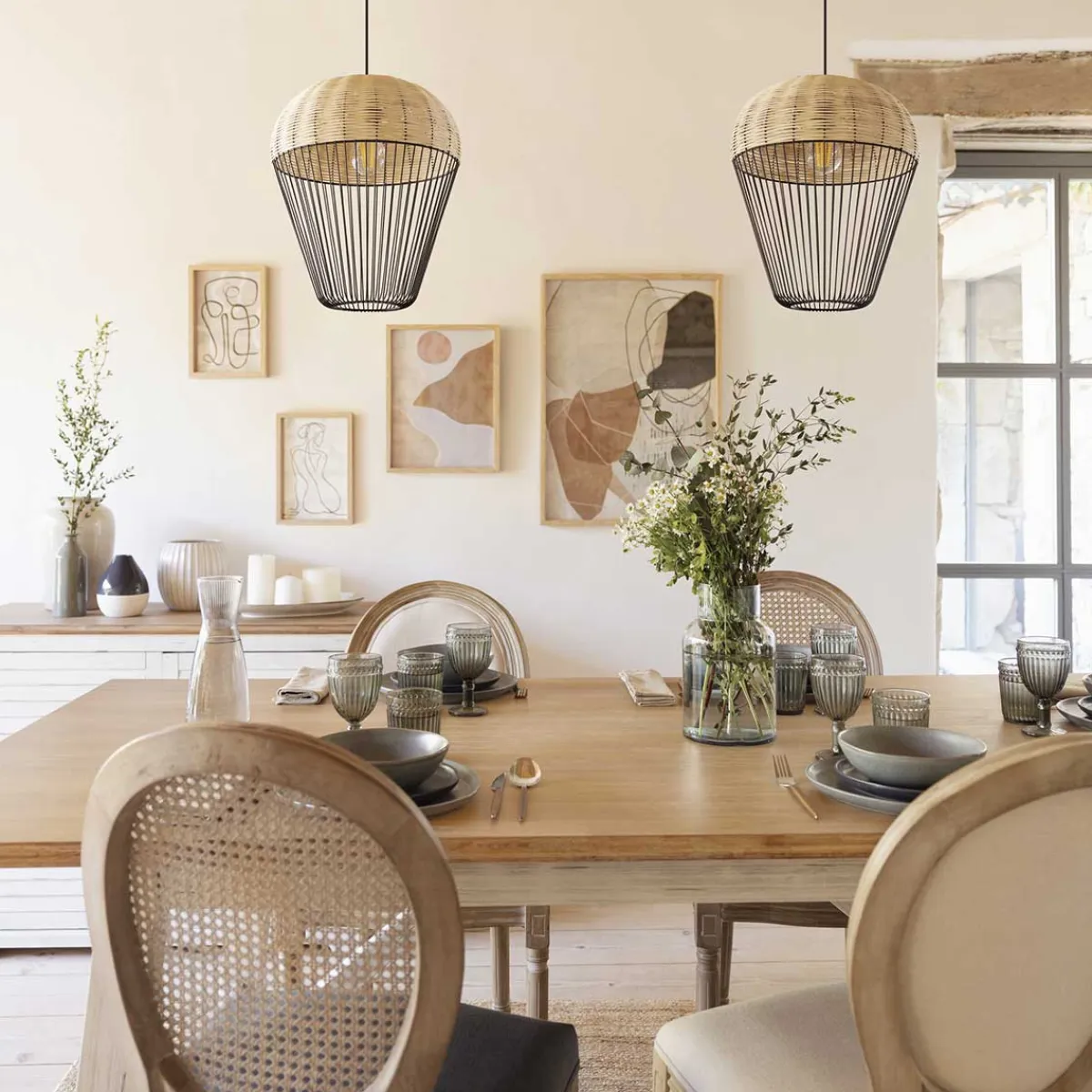 Lámpara De Techo Pvc Y Metal Anea | Descubre este y otros artículos de iluminación en hôma para iluminar y decorar tu hogar | Color: Beige y Negro | Medidas: 30.5×30.5×35.5cm | Medidas del cable: 100cm | Casquillo: E27 | Potencia máxima: 40W | Bombilla no incluida | Material: Pvc, Hierro | Marca: Atmosphera