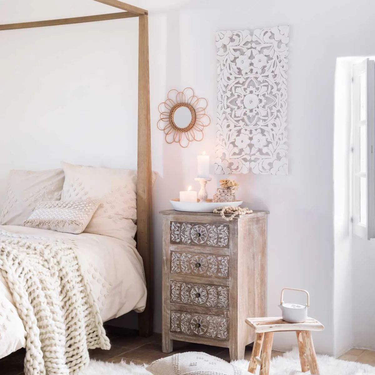 atmosphera Lienzos Y Cuadros Decorativos|Estilo Étnico>Mural De Madera Tallada Blanco 85x45Cm