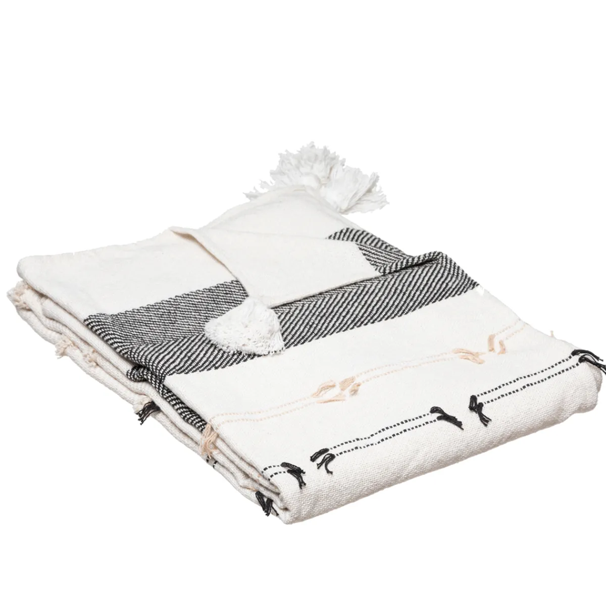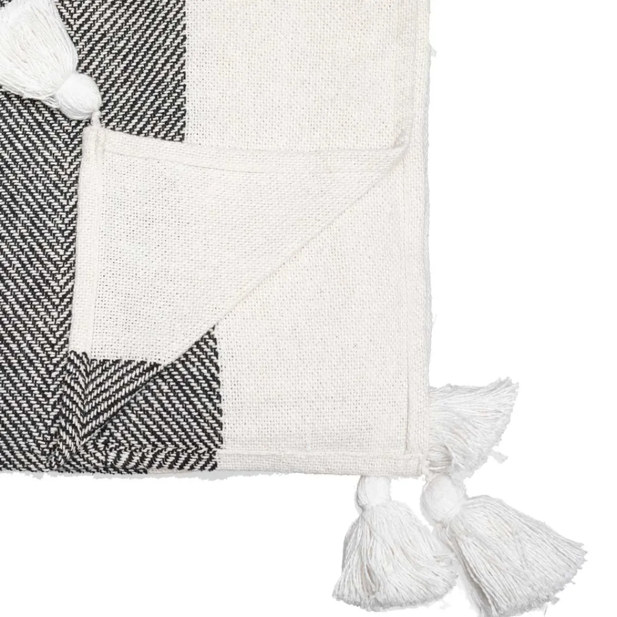 Manta Tropi Blanca Y Negra Con Borla 130x180cm | La colección textil hôma reune propuestas únicas para personalizar tu casa. Desde cojines decorativos y fundas de cojín hasta las mantas más confortables, ¡ Vive en tu hogar con comodidad ! | Color: Blanco, Negro | Medidas: 130x180cm | Material: Algodón |Marca: Atmosphera