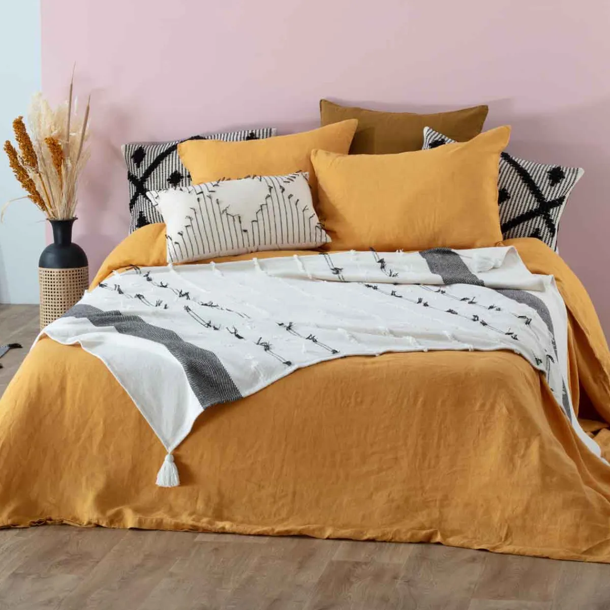 atmosphera Mantas>Manta Tropi Blanca Y Negra Con Borla 130x180cm