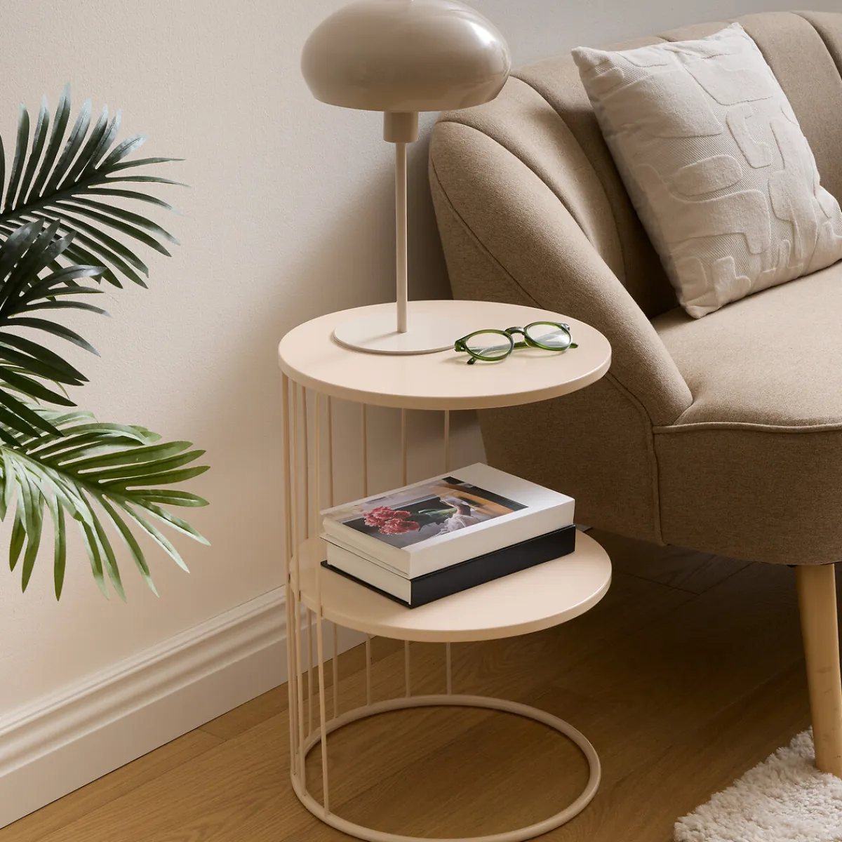 Mesa auxiliar KOBU Taupe | 52x36x36cm | Carga máxima 15kg | Descubre las mesas auxiliares que tenemos para ti. Los muebles Hôma están diseñados para Home Happy Living. Los mejores artículos de decoración están aquí. | Color: Taupe | Medidas: 52x36x36cm | Material: Metal