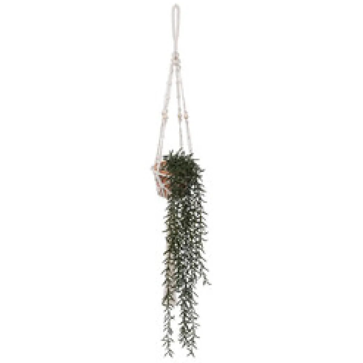 Maceta Terracota Colgante Con Planta Artificial | 90x13cm | Descubre la oferta de Plantas Artificiales que tenemos para ti. Flores Artificiales que mantendrán tu hogar siempre decorado | Color: Terracota, Verde | Medidas: 90x13cm | Material: Arcilla, Algodón, Polietileno | Marca: Atmosphera