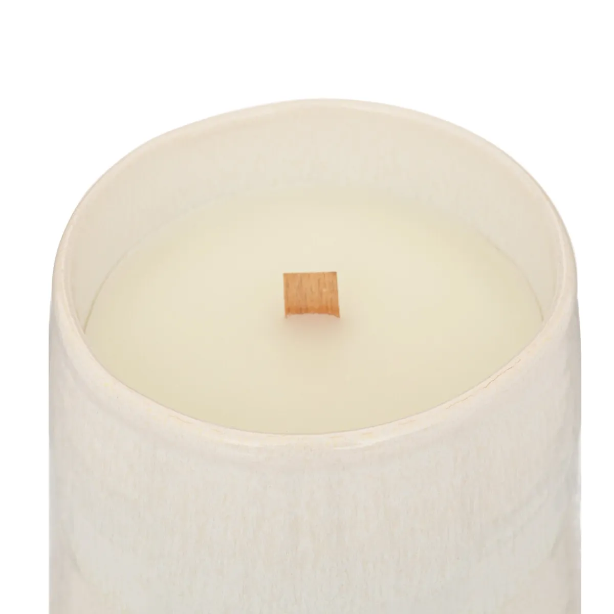 Portavelas Con Vela Aroma Jazmín | Descubre nuestra gama de portavelas, faroles y candelabros y encuentra el que mejor se adapta a la decoración de tu hogar | Aroma: Jazmín | Tiempo de combustión: 55h | Color: Blanco | Medidas: 10cm | Material: Gres, Cera | Marca: Atmosphera