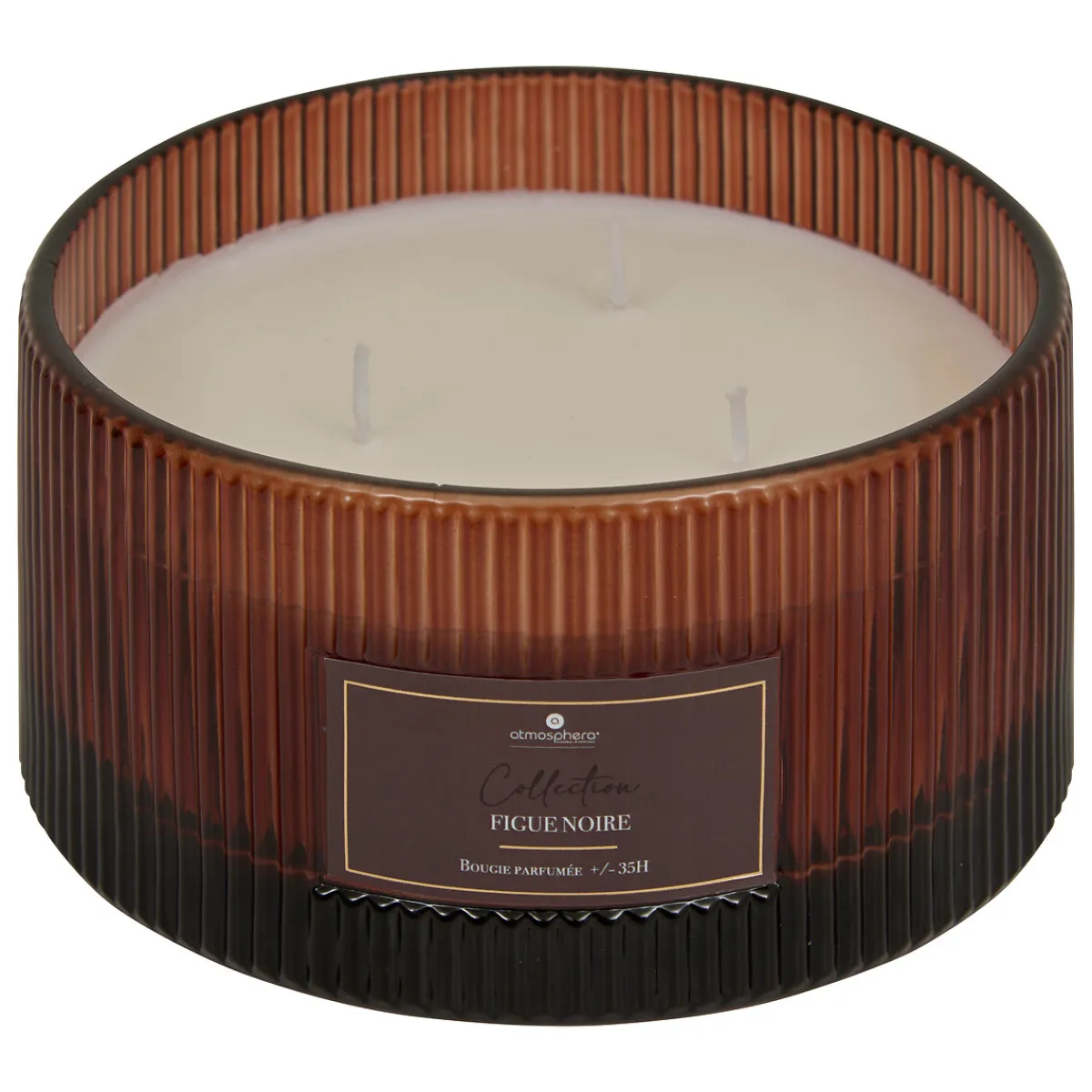 Vela perfumada con portavelas de vidrio COLLECTION figue noire 635gr | Descubre nuestra gama de velas y velones decorativos para el hogar. La mejor decoración para el hogar es una decoración para el hogar. | Color: Marrón | Medidas: 8,1×15,1×15,1cm | Material: Vidrio y Parafina | Aroma: Figue Noire | Capacidad: 635gr | Marca: Atmosphera