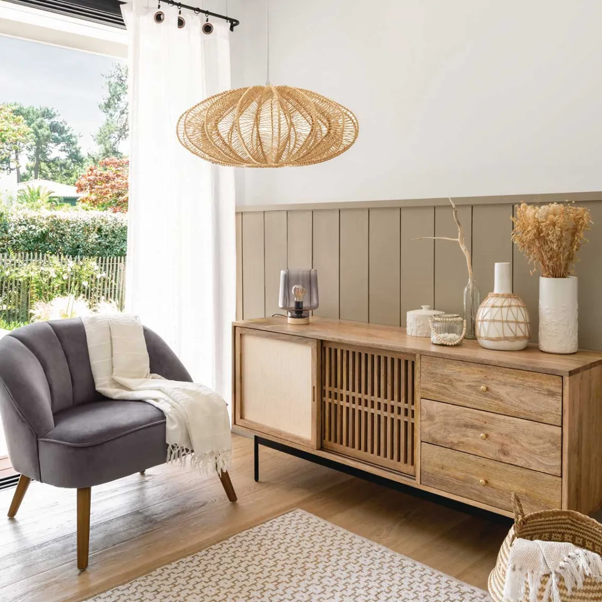 Lámpara De Techo Tery Beige 57cm | Bombilla no incluida | Longitud del cable: 95cm | Portalámpara: E27 | Potencia máxima: 40W | Clase: 2 | Descubre este y otros artículos de iluminación en hôma para iluminar y decorar tu hogar | Color: Beige | Medidas: 57x24cm | Material: Metal y papel | Marca: Atmosphera