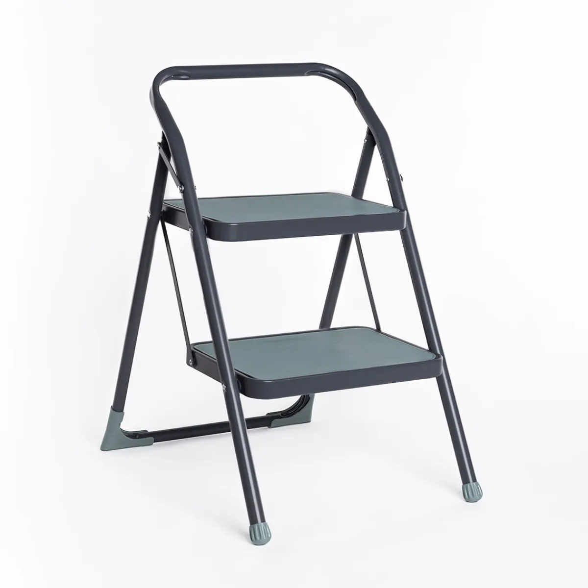 Escalera gris de metal con 2 peldaños | 96x44cm | Descubre este y más artículos de la gama de almacenaje hôma. Nuestros artículos de almacenaje para lavandería y cuartos de servicio le ayudarán a aprovechar al máximo sus espacios. | Color: Gris | Medidas: 96x44cm | Material: Metal | Marca: 5Five