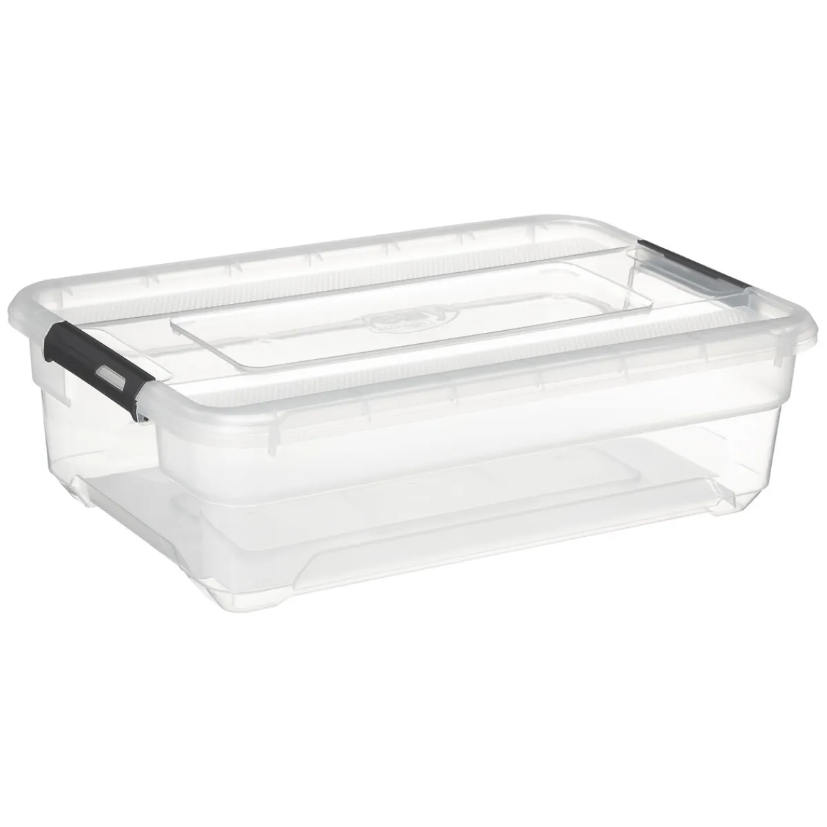 Caja De Almacenaje 26.5L Solutions | Prácticas asas con bisagras que permiten la apertura de la caja sólo por un lado. Ruedas bidireccionales. Conoce este y más artículos que tenemos disponibles para tu hogar. ¡Ordenar y organizar nunca ha sido tan fácil! Descubre la gama de almacenaje hôma | Color: Transparente | Medidas: 17×38.5x58cm | Material: Polipropileno | Capacidad: 26.5L